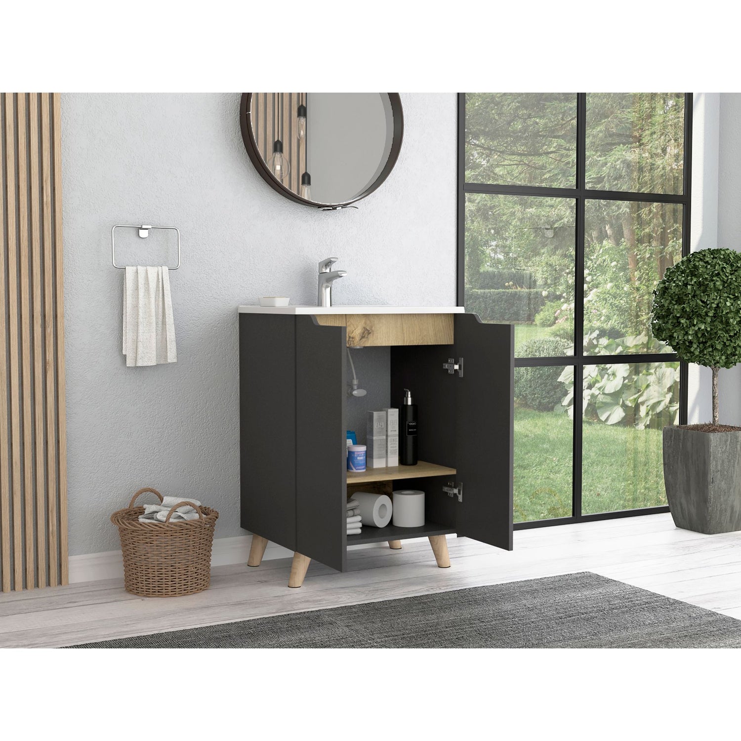 Mueble para Lavamanos Laurent Plomo 60x86cm Individual con Lavamanos y sin Grifería