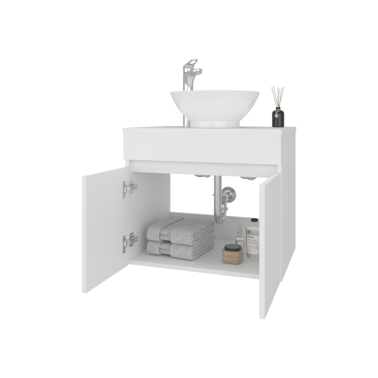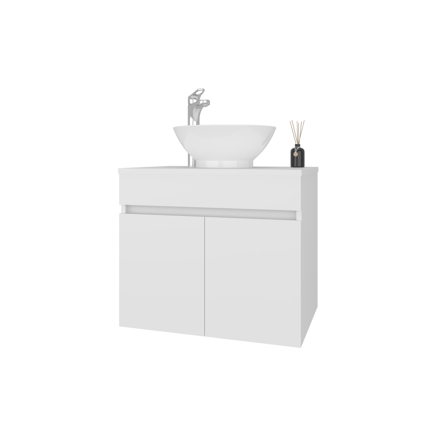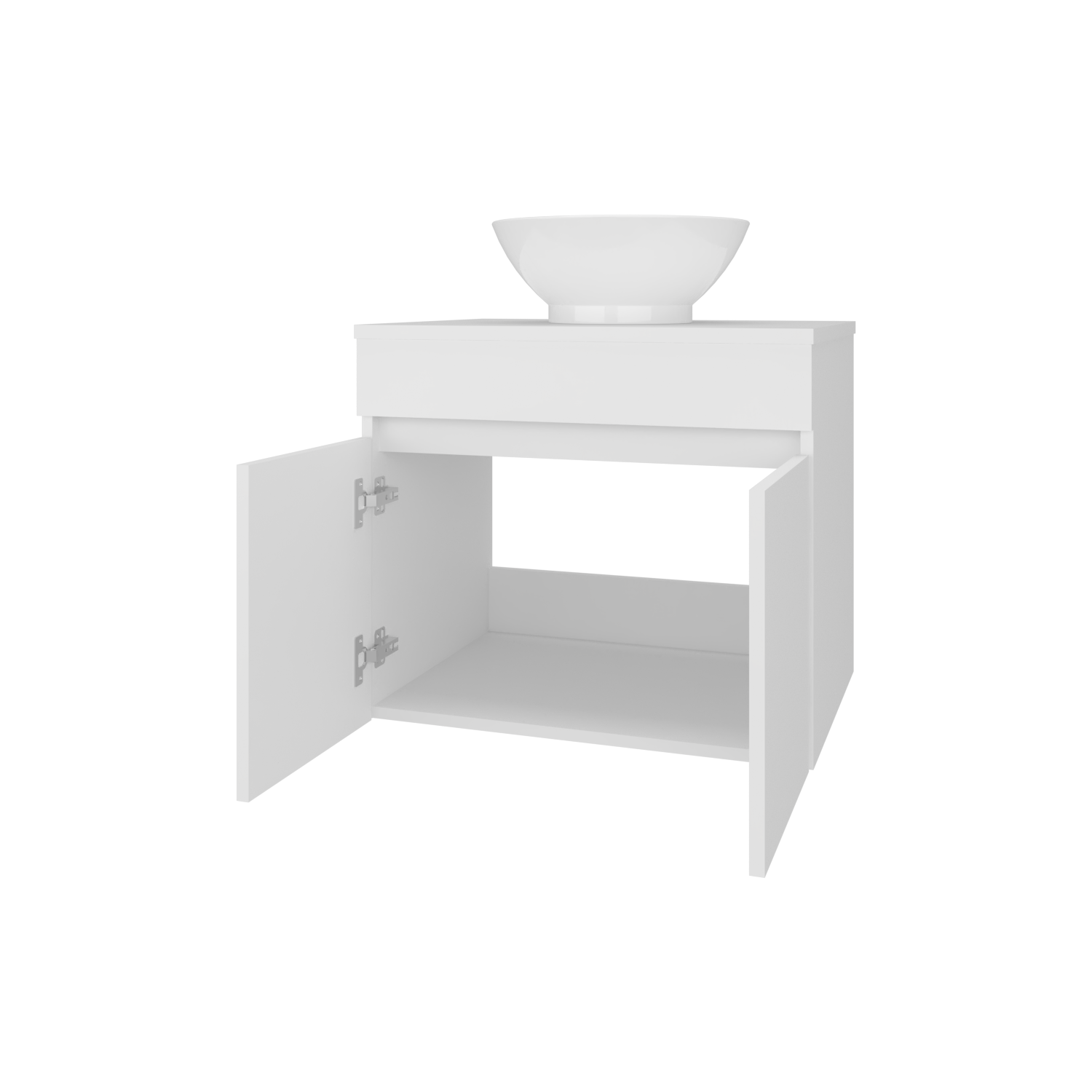 Mueble para Lavamanos Manchester Blanco 59.5x51.8cm Individual Flotante con Lavamanos Vessel y sin Cajones