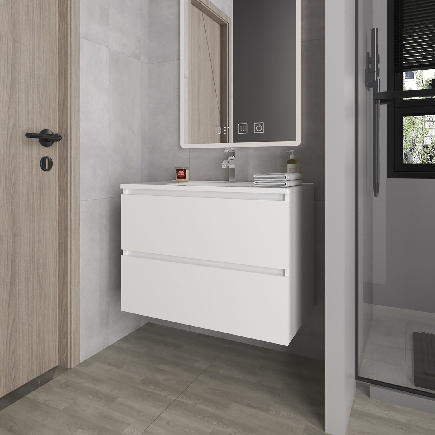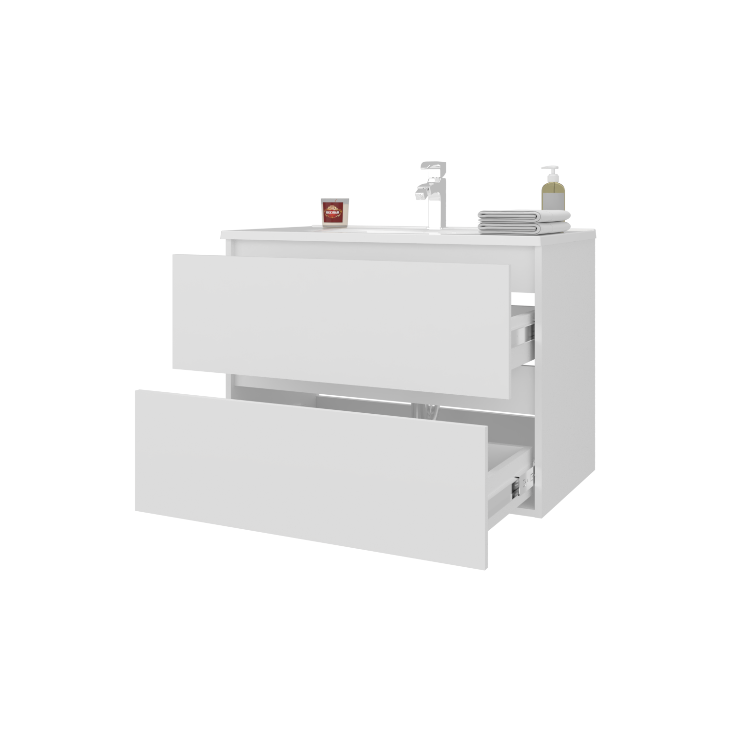 Mueble para Lavamanos Opalo Blanco 80x56.8cm Individual Flotante con Lavamanos Integrado y con Dos
