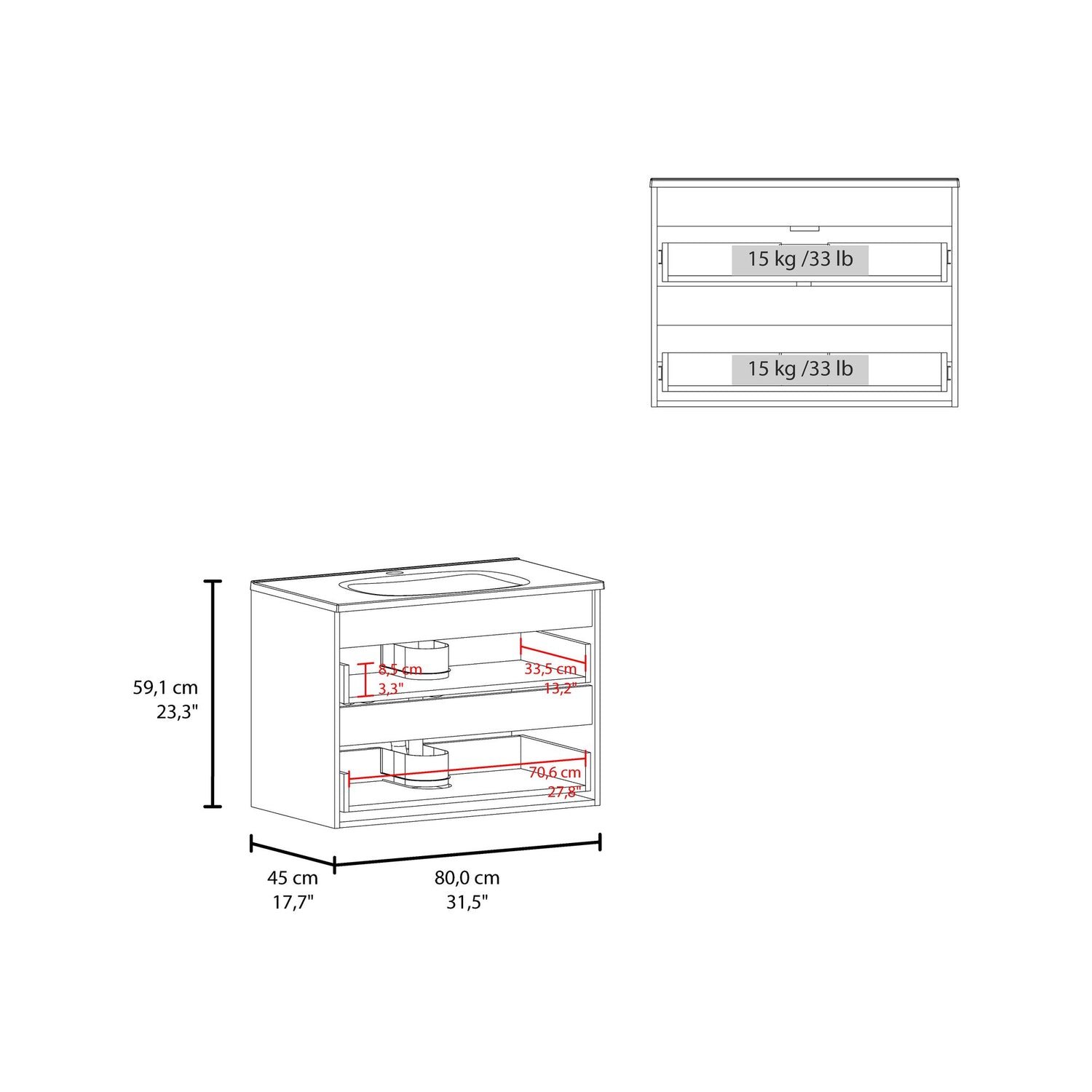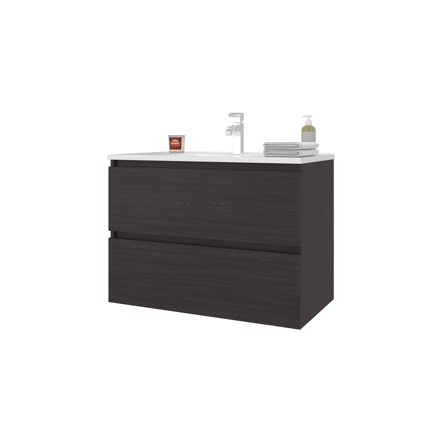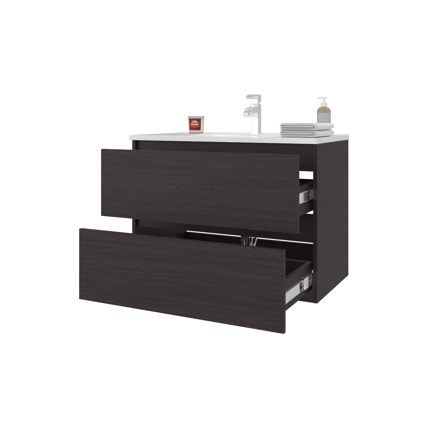 Mueble para Lavamanos Opalo Wengue 80x56.8cm Individual Flotante con Lavamanos Integrado y con Dos