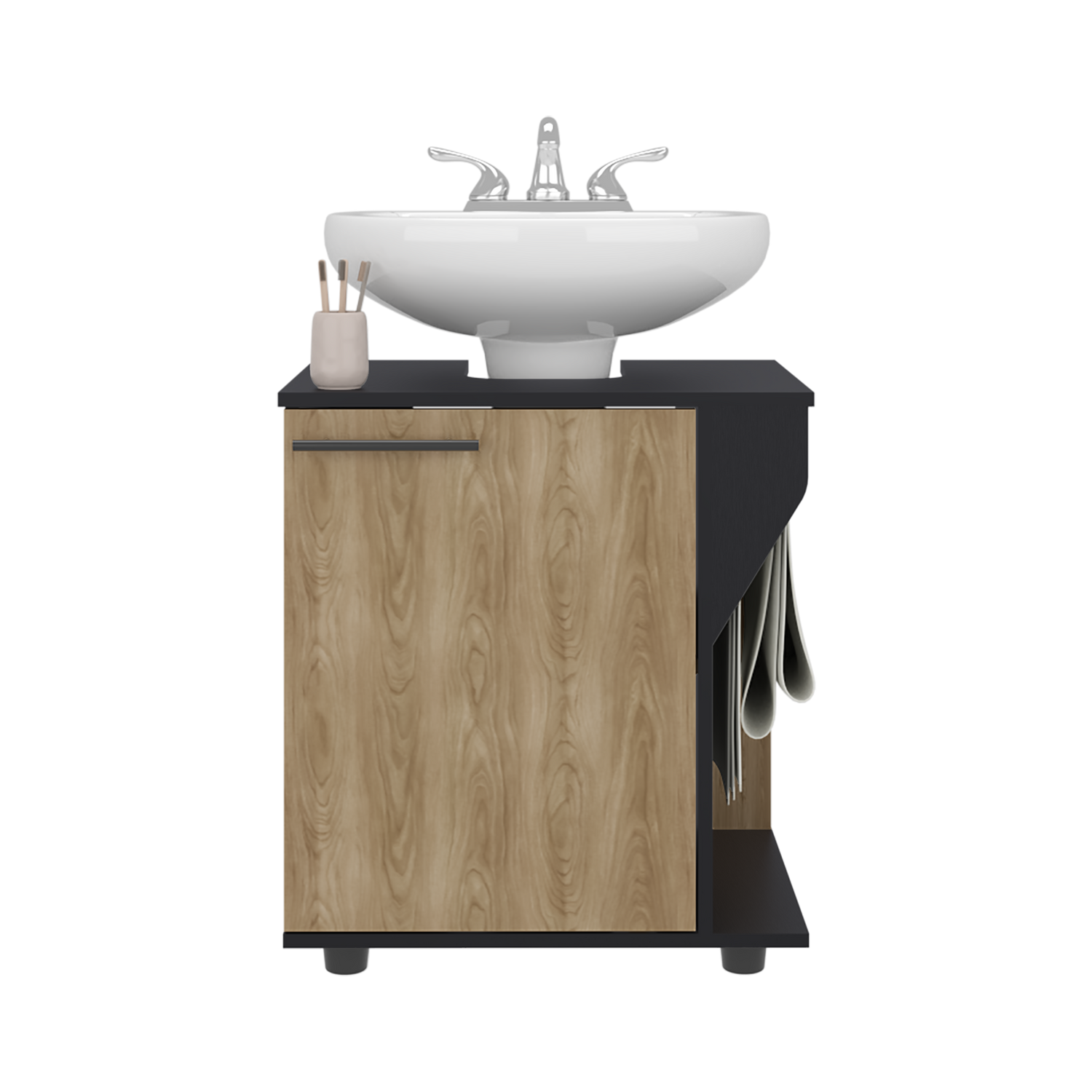 Mueble para Lavamanos Phillips Wengue y Fresno Europeo 56x62.1cm Individual sin Lavamanos y con Una Puerta