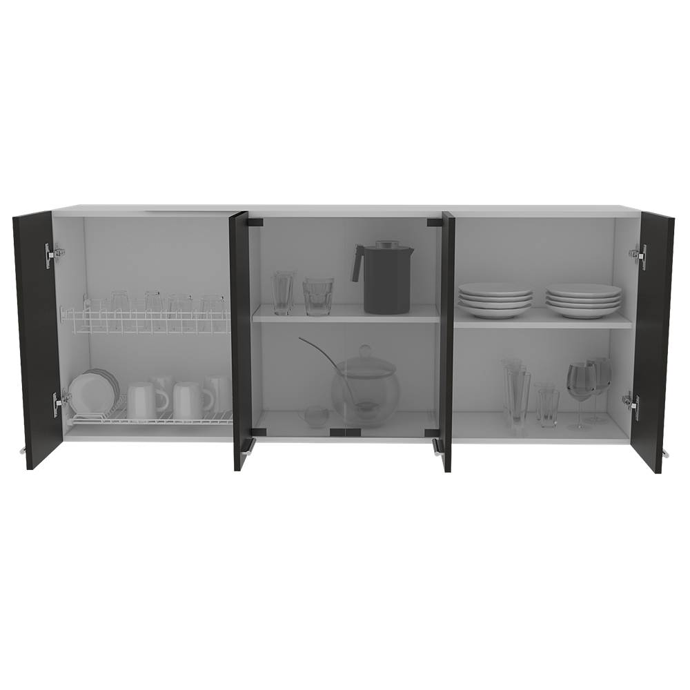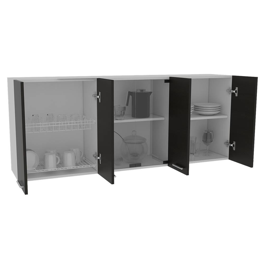 Modulo superior de cocina con amplios espacios para guardar utensilios de cocina o alimentos, cuatro puertas abatibles, manijas metalicas, entrepaño movil central, incluye dos puertas centrales de vidrio.