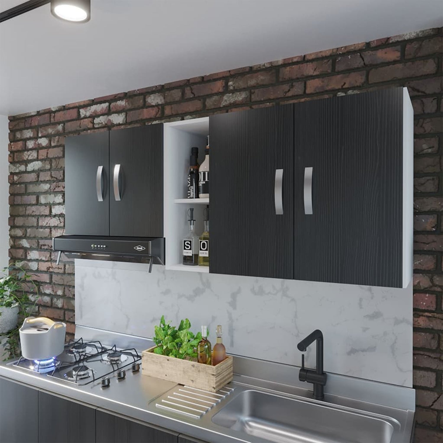 Mueble Superior Hannah Blanco y Wengue 150x56cm Para Lado Izquierdo o Derecho