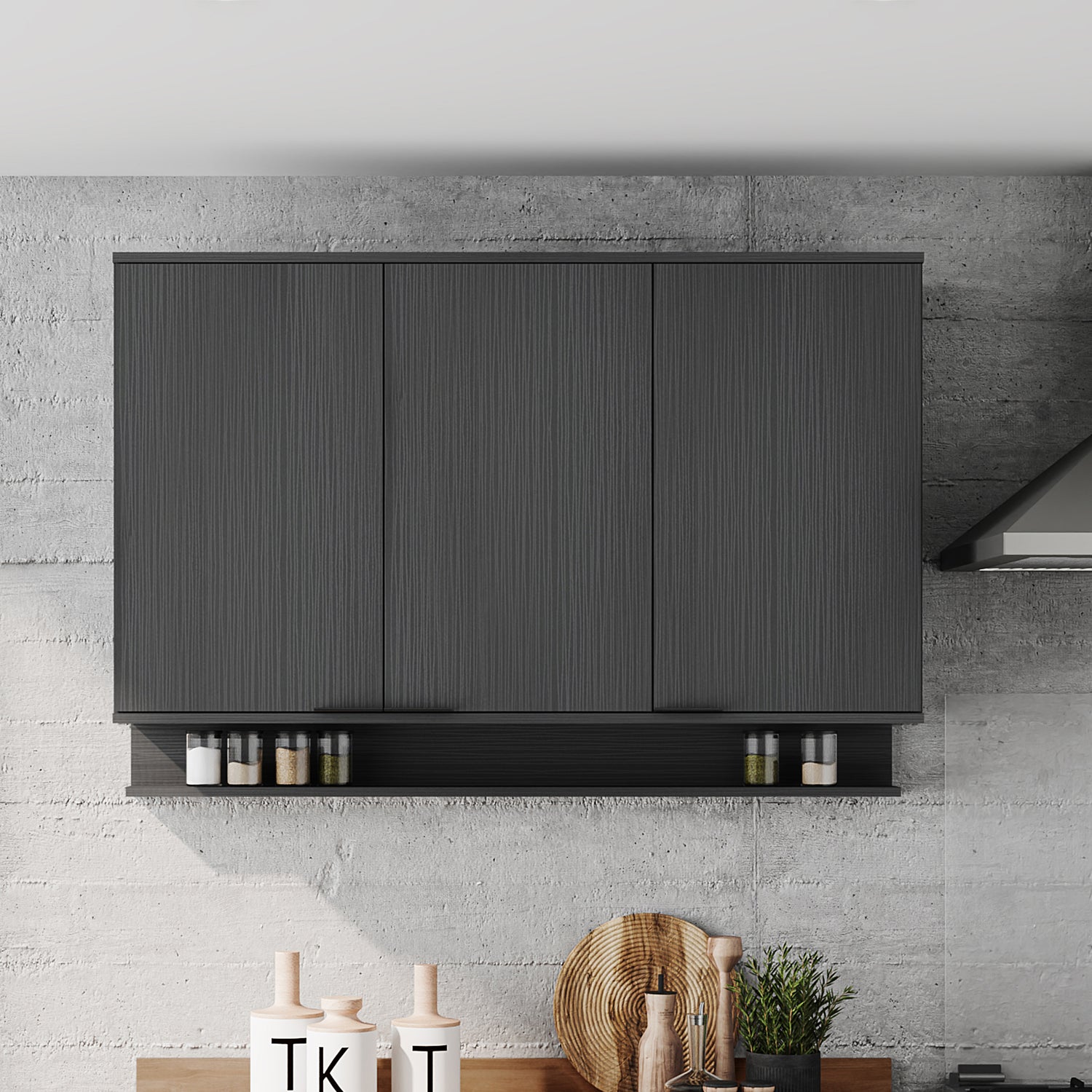 Mueble Superior Negro 120x79.5cm con Tres Puertas