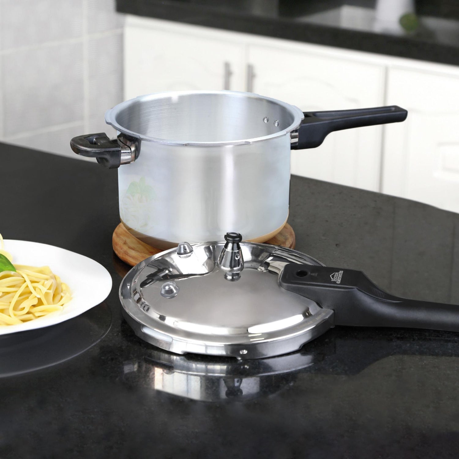 Olla de Presión Plateado y Negro 27.2x24.3cm De 7 Litros Apta para Inducción con Mango de Baquelita