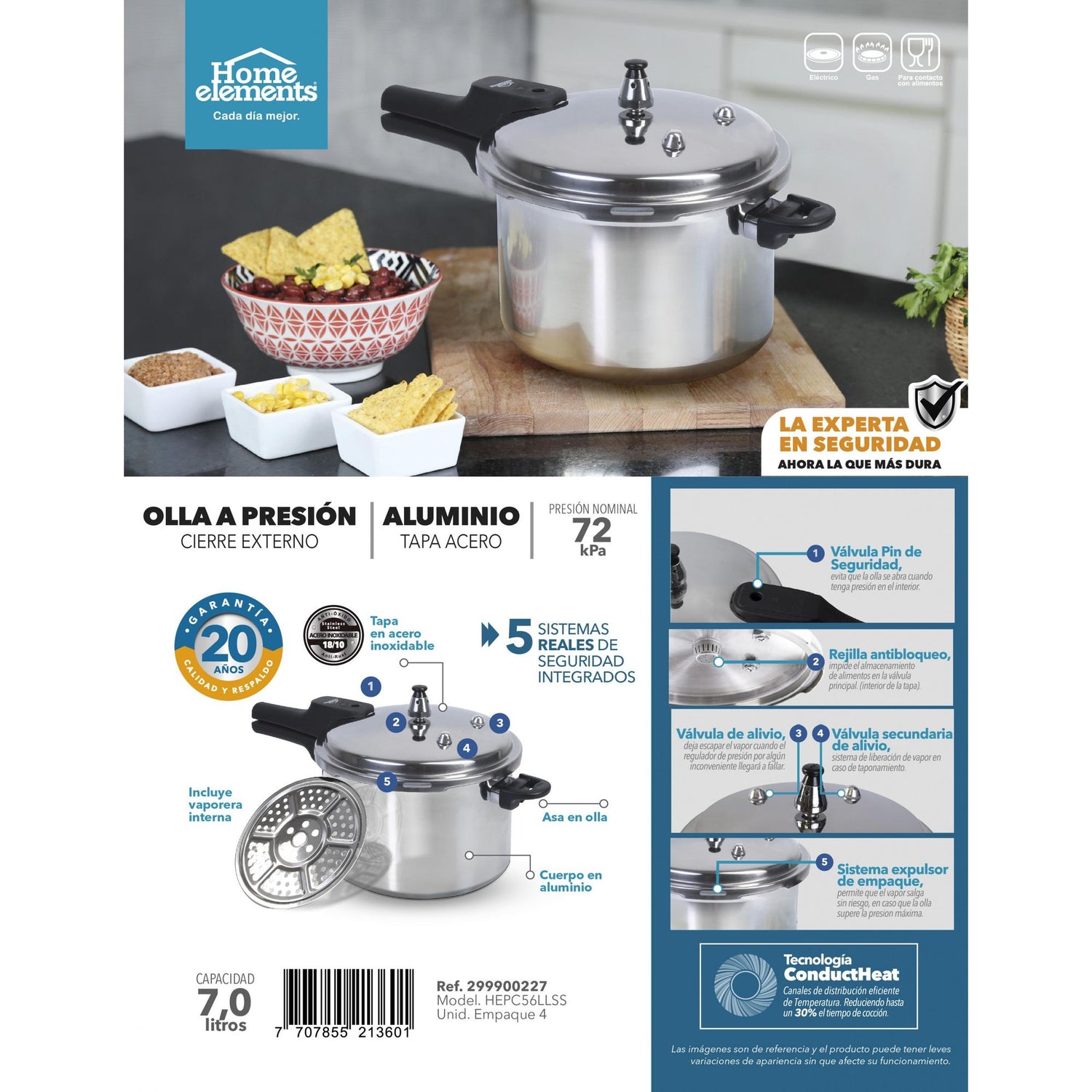 • Apta para estufas eléctricas y a gas, lo que la hace versátil y fácil de usar.