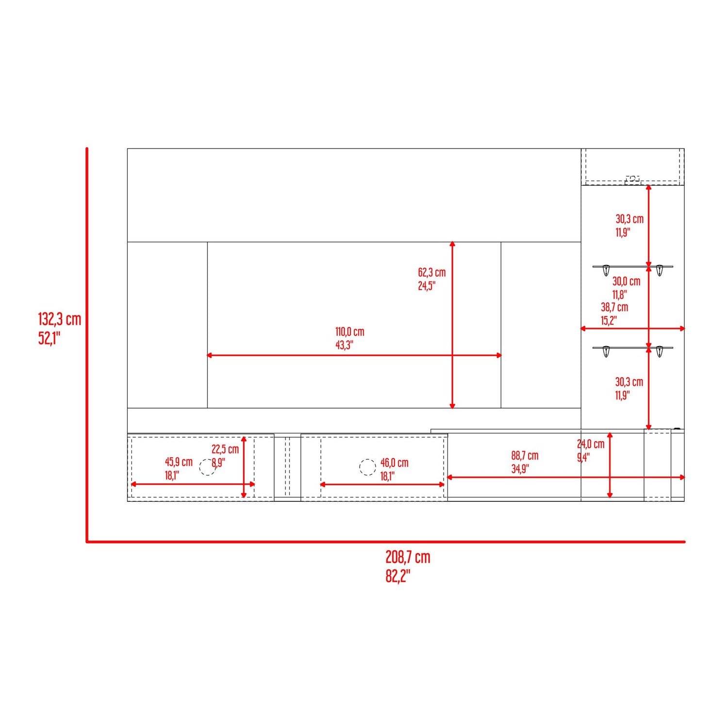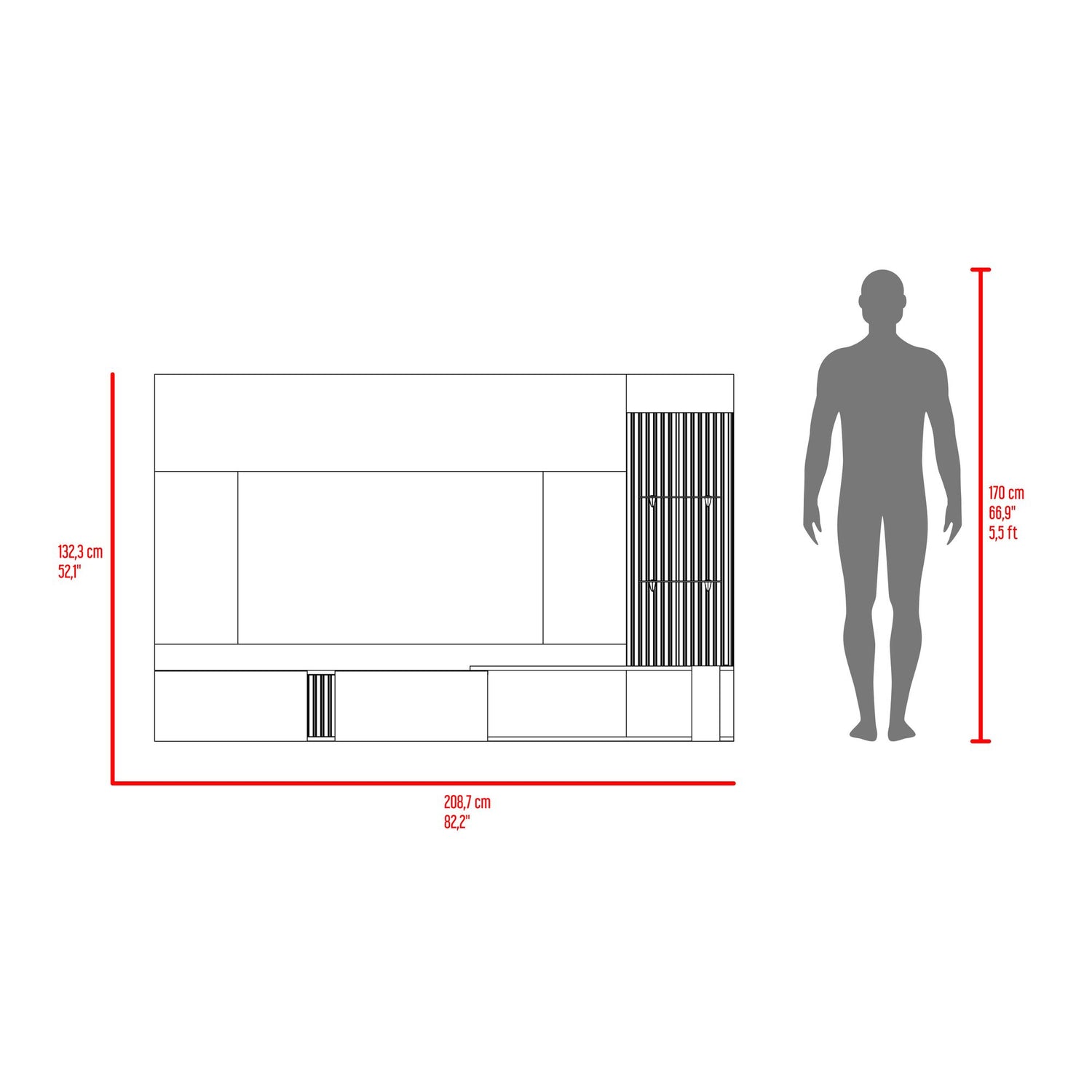 Panel de TV Isolde Capri y Fresno 208.7x132.2cm para TV Hasta 70" Pulgadas con Seis Compartimientos