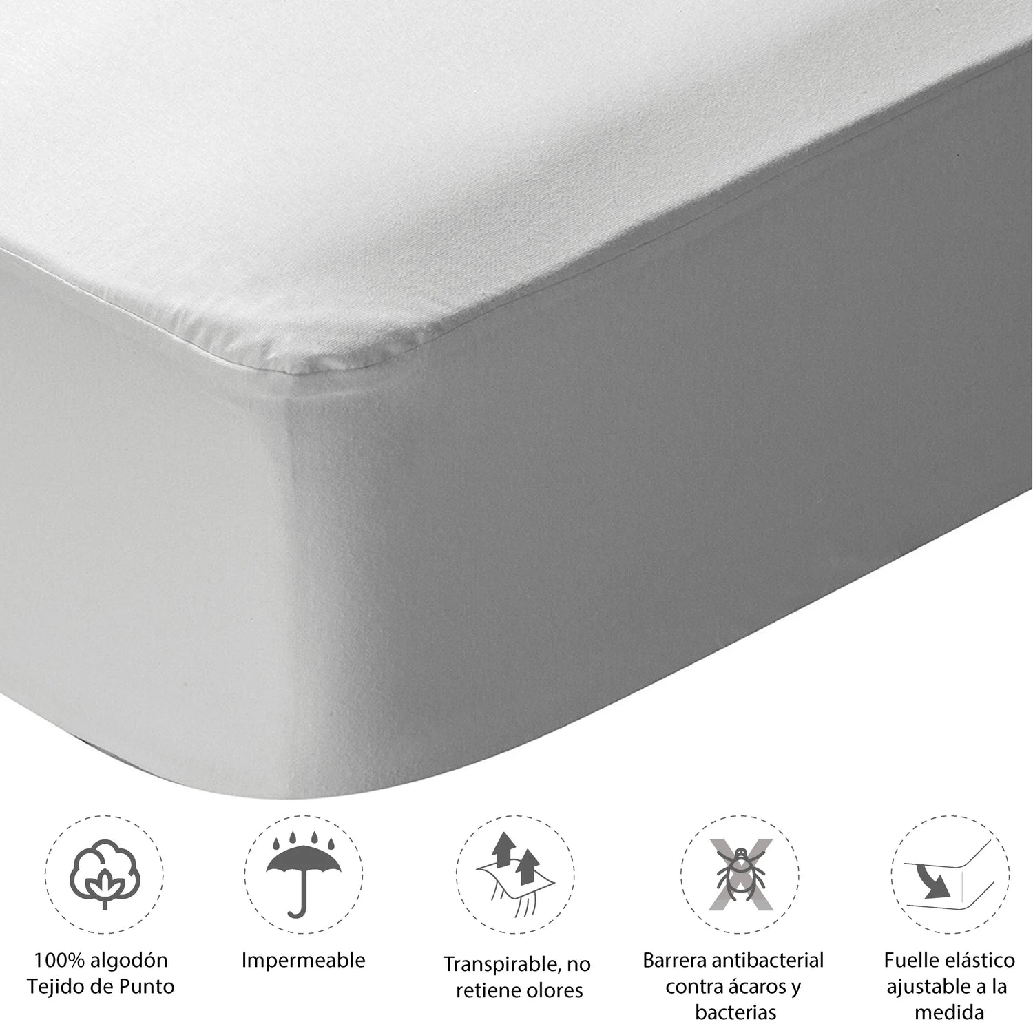 Protector de Colchón Impermeable Jersey Blanco Para Cama Semidoble 120 X 190 Cm