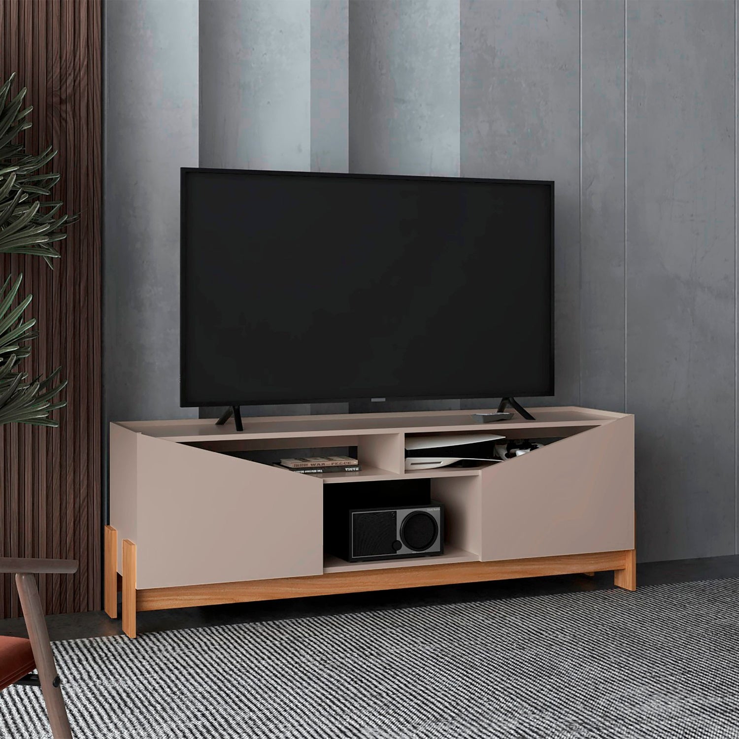 Rack de TV Holanda Capri y Fresno Europeo 160x56cm para TV Hasta 70 Pulgadas sin Cajones y con Ranuras para Cables