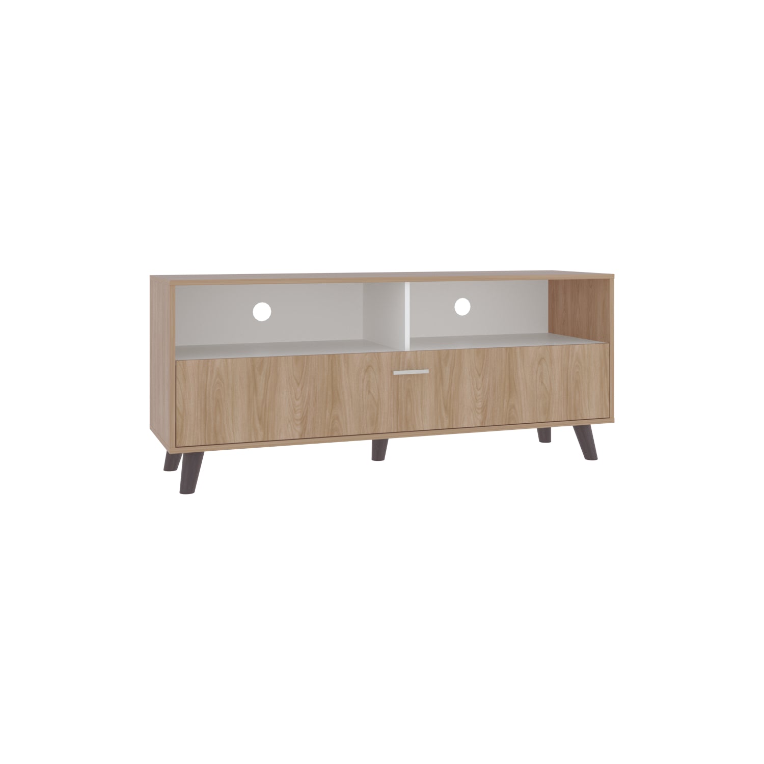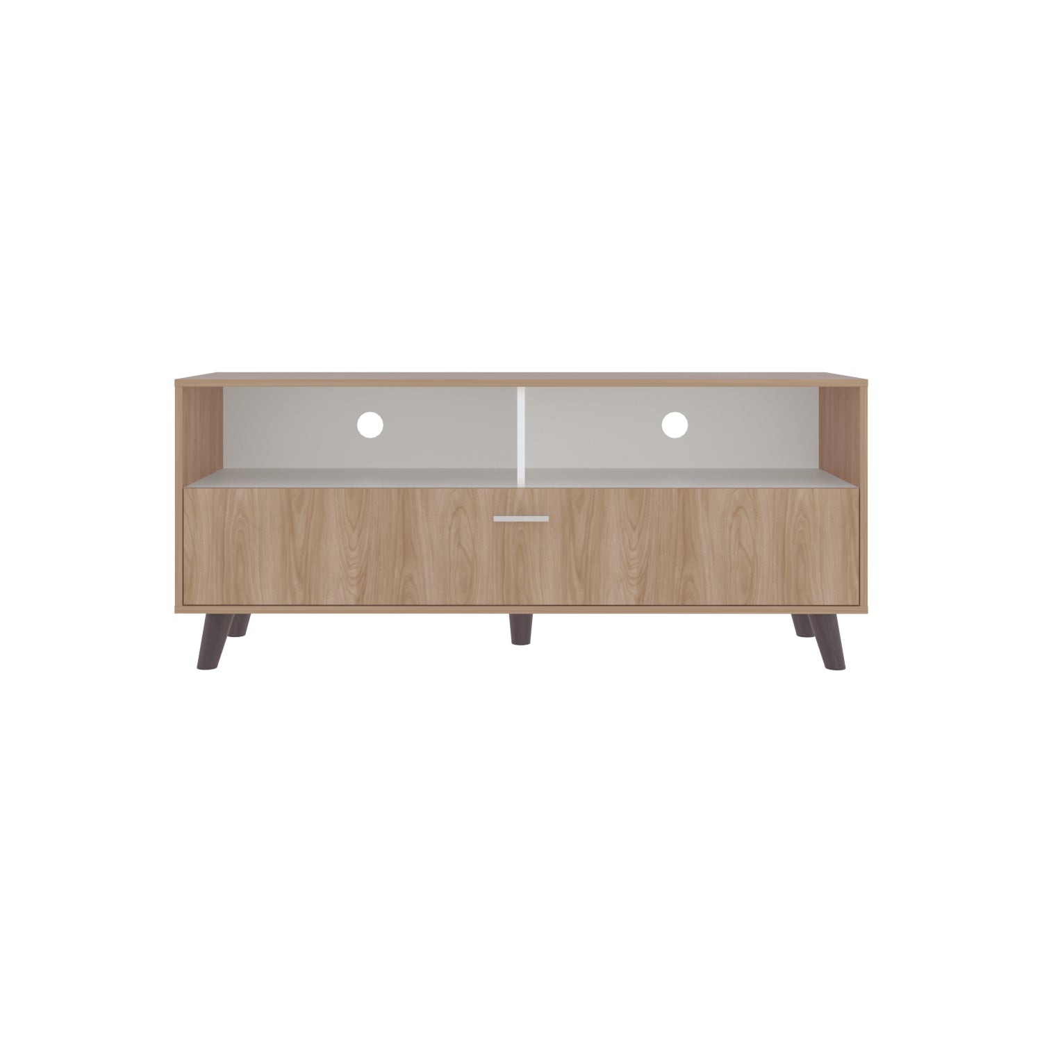 Rack de TV Patrick Fresno Europeo y Blanco 139x59cm para TV Hasta 60 Pulgadas sin Cajones y con Ranuras para Cables