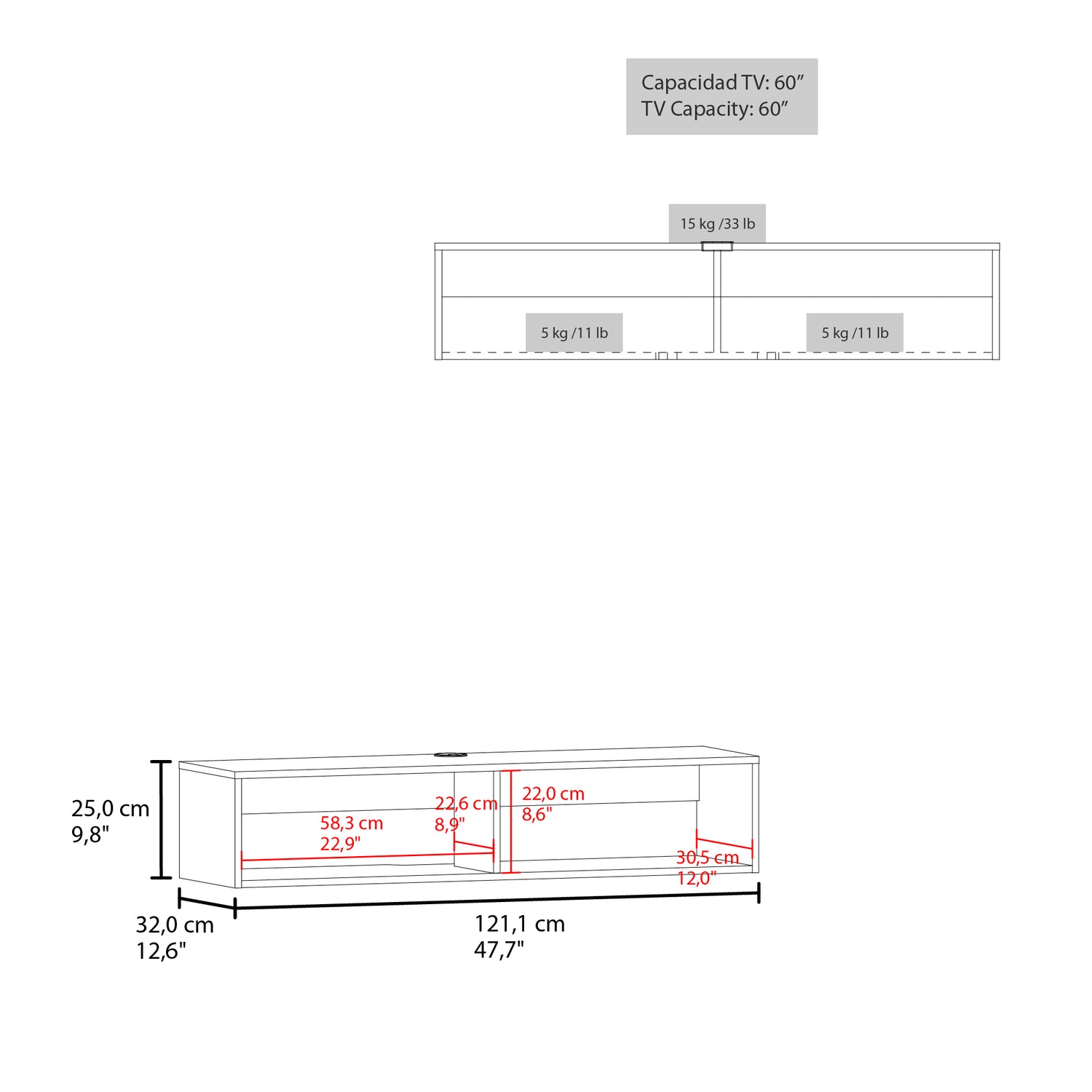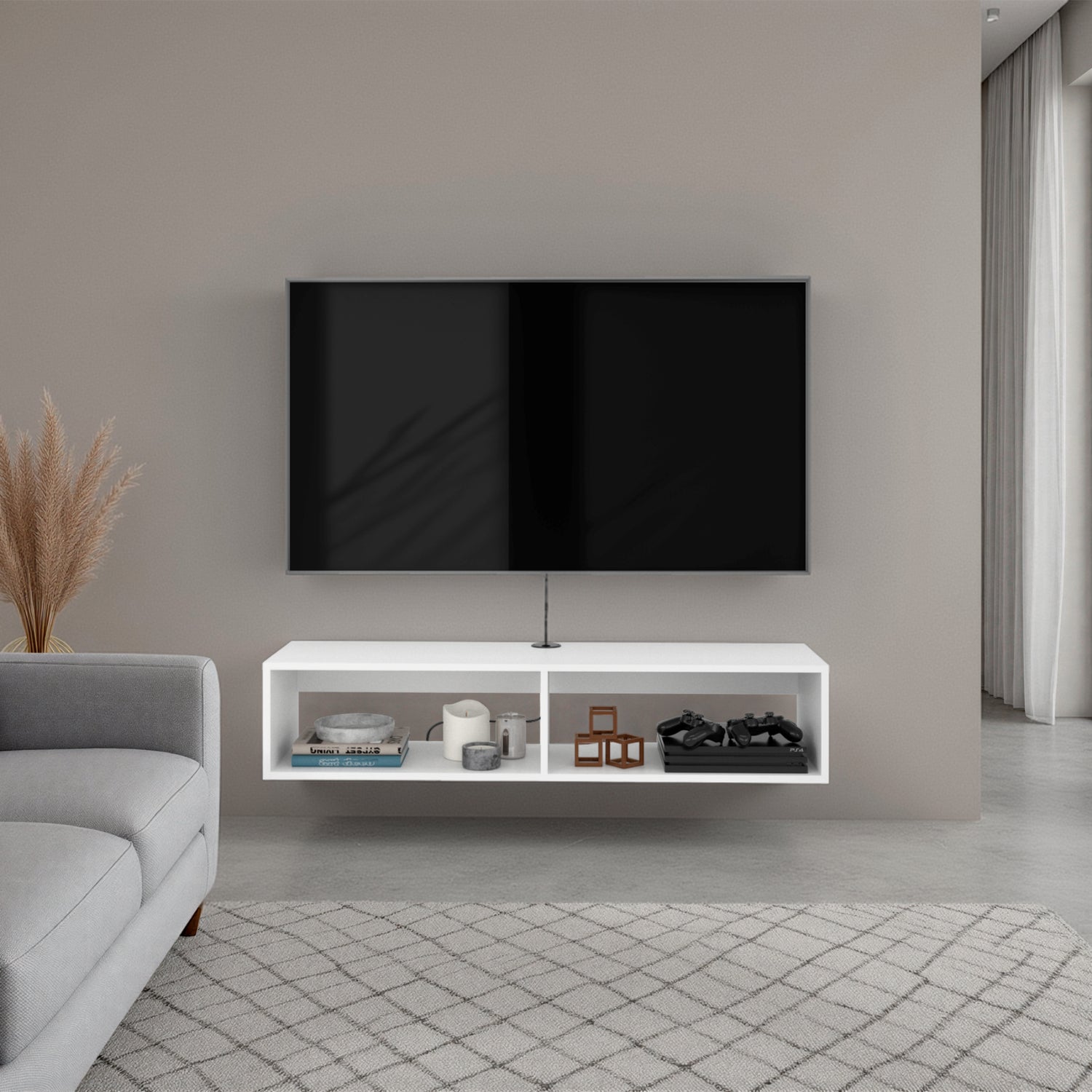 Rack de TV Rockwood Blanco 121.1x25.3cm para TV Hasta 55" Pulgadas con Dos Compartimientos y con Ranura para Cables