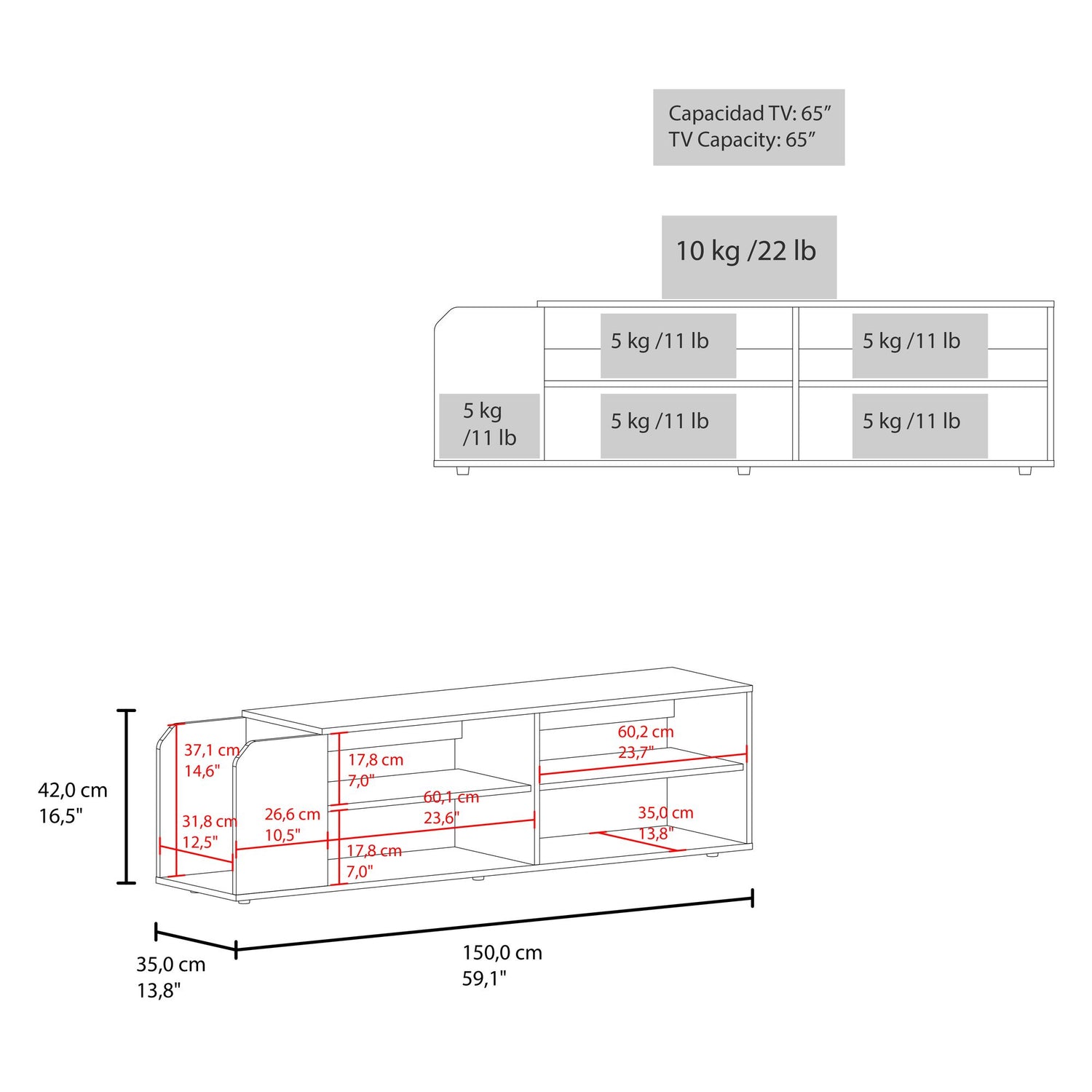 | Tamaño máximo de tv | HASTA 60 PULGADAS |