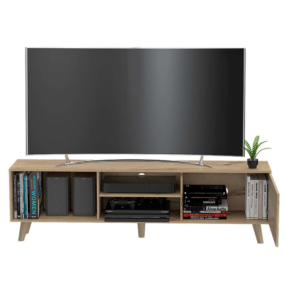 Rack para TV de 70'' maximo, con puerta abatible, espacio inferior para colocar objetos decorativos y equipos de audio y video