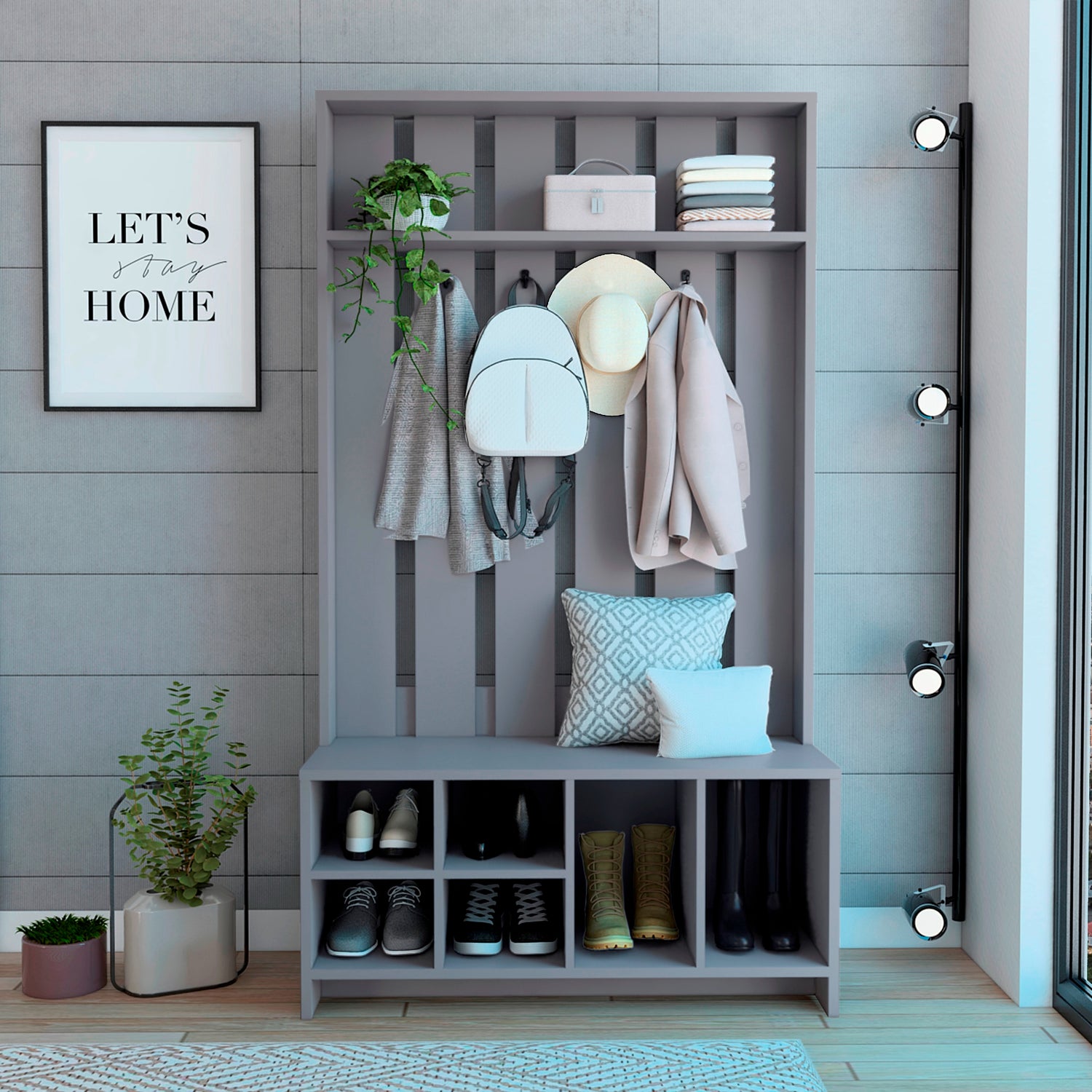 Recibidor Tulcan Gris 96.8x172.6cm sin Cajones y con Cuatro Compartimientos