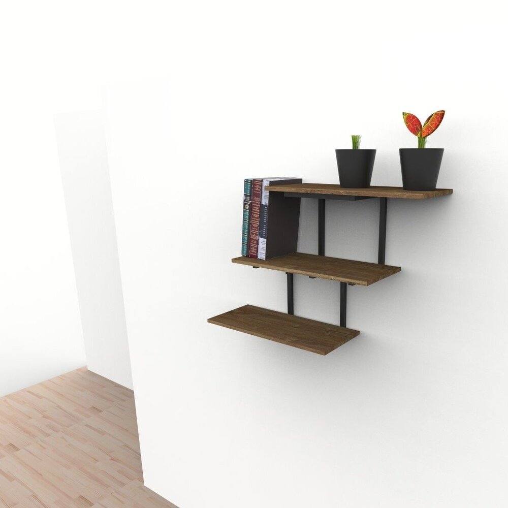 Repisa flotante elaborada en tablero melamínico color brooklyn oak. Estructura metálica negra Dimensiones: 92 x 25 x 59,6 cms de altura