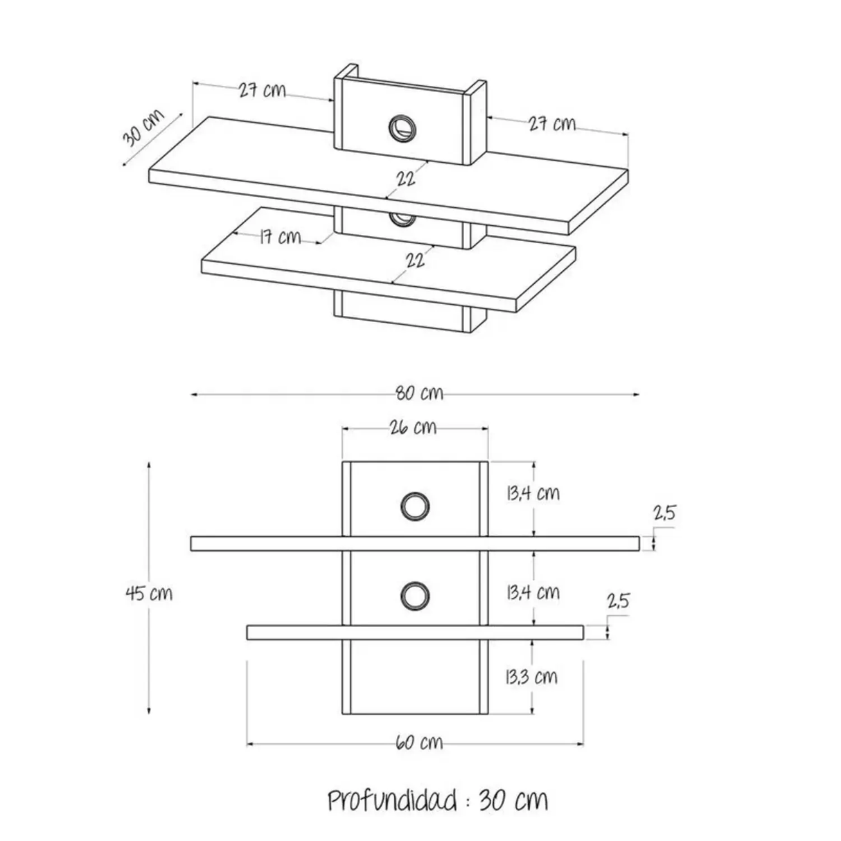 Repisa Indi Flotante 80x30 Rovere 2 Estantes