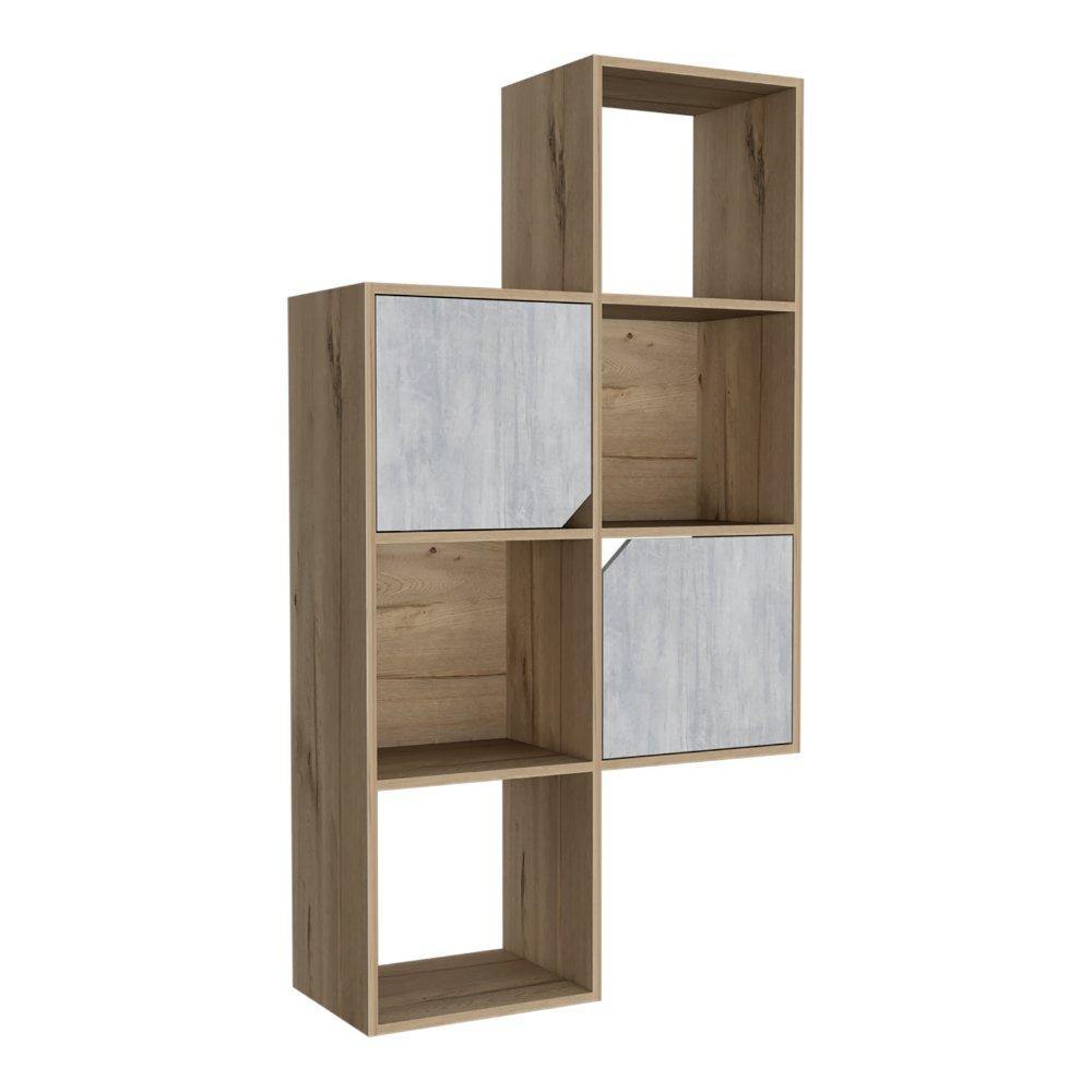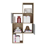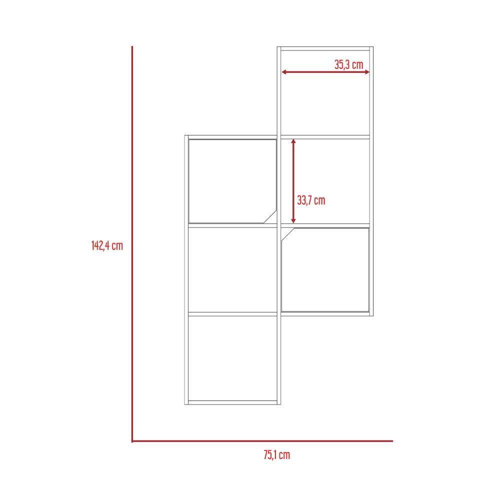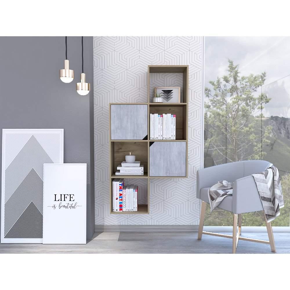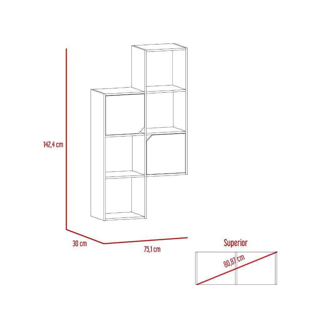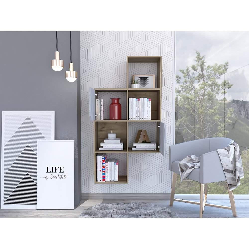 Cuenta con un diseño moderno con combinación de colores, múltiples entrepaños y superficies para ubicar objetos. Puerta batiente para almacenamiento.