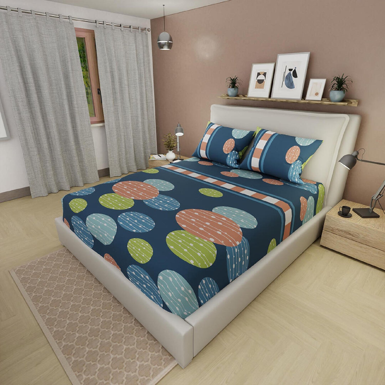 Sábana Ajustable Serebel Azul Oscuro de Círculos Para Cama Doble 140 X 190 Cm