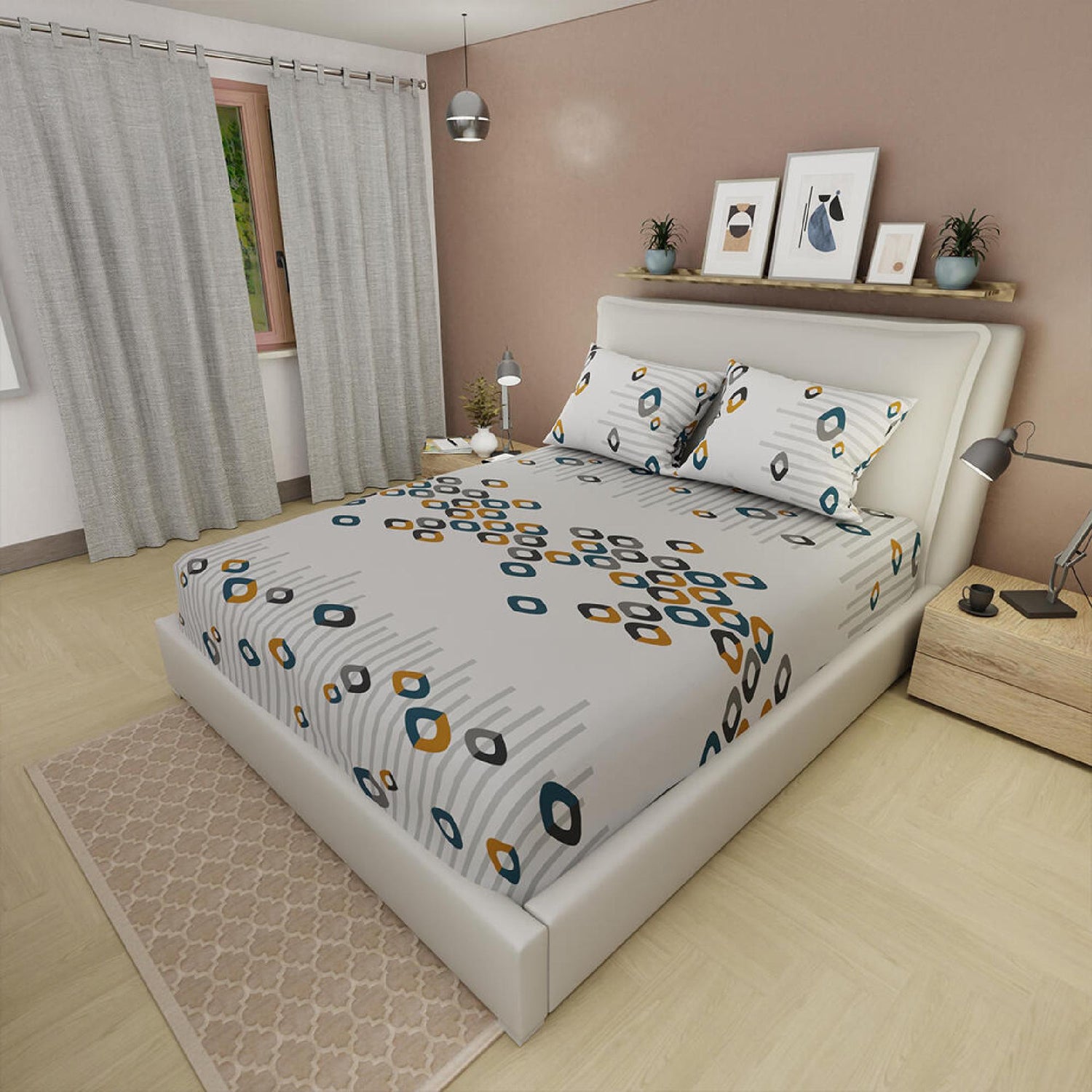 Sábana Ajustable Serebel Blanco de Círculos Para Cama Doble 140 X 190 Cm