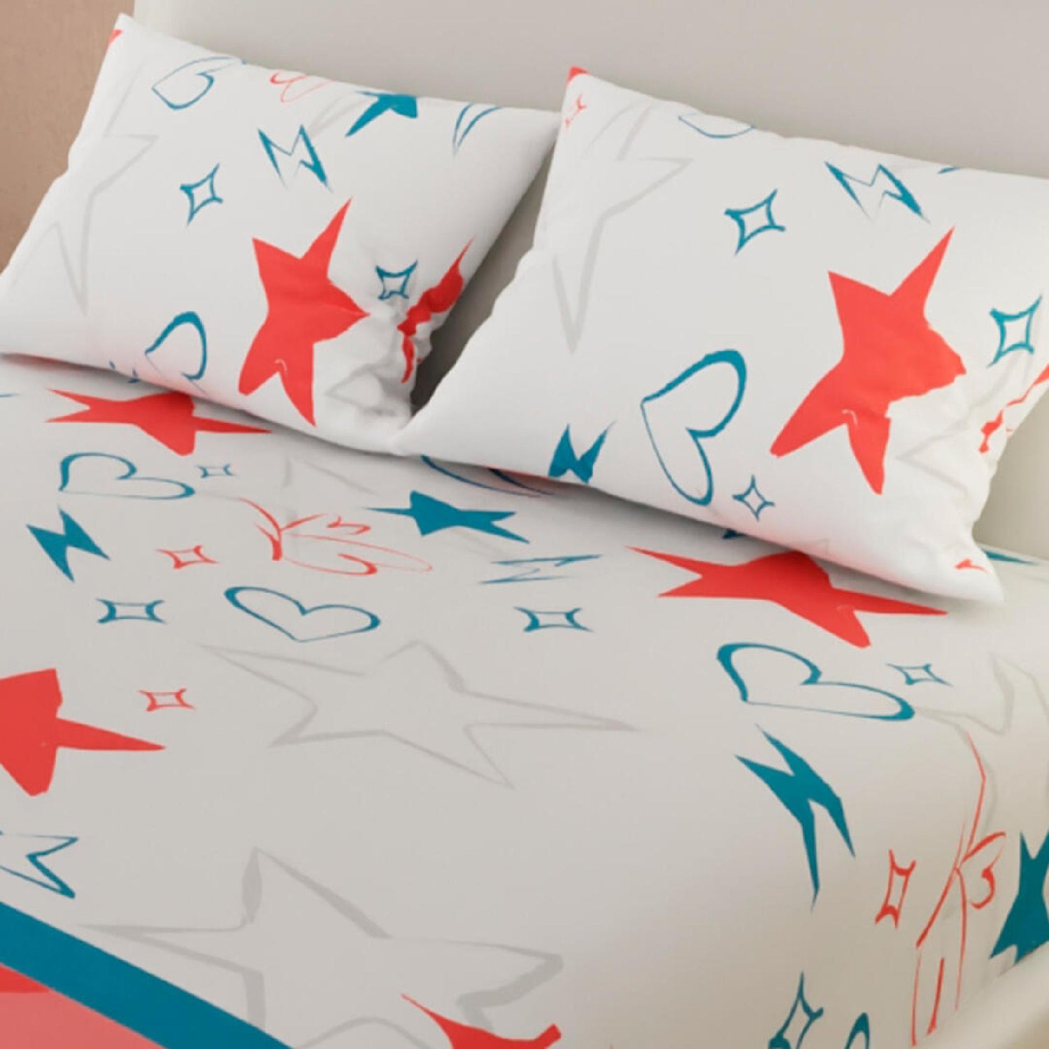 Sábana Ajustable Serebel Blanco de Estrellas Y Corazones Para Cama King 200 X 200 Cm