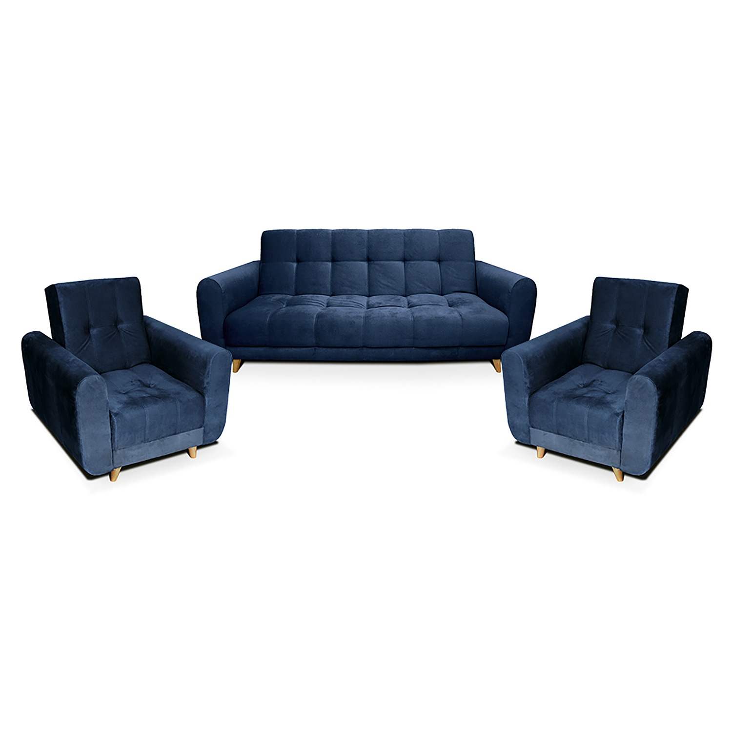 Sala Clic Clac Archer Azul 210 cm con Sofá de 3 Puestos y 2 Poltronas Reclinables