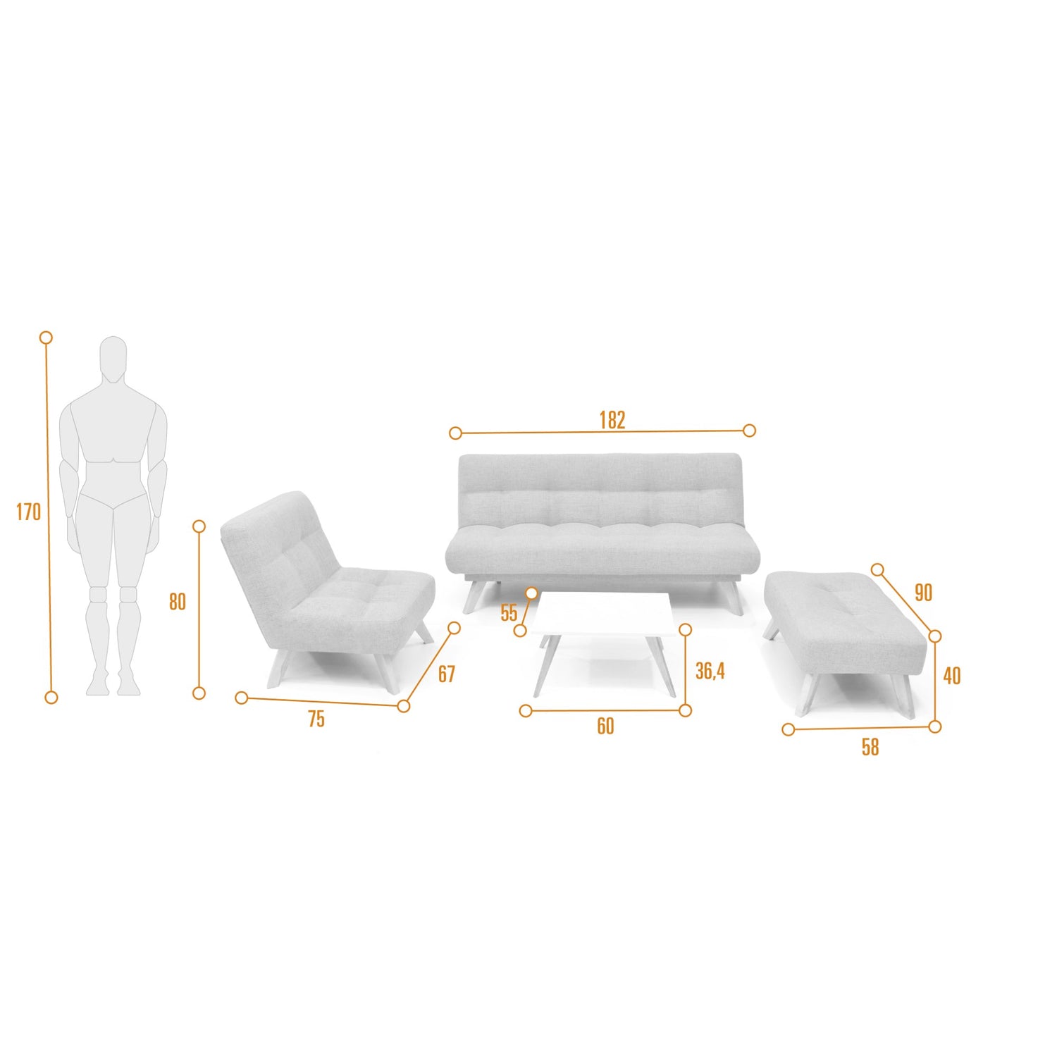 Sala Porto Plata 182x85cm de Cinco Puestos Recinable
