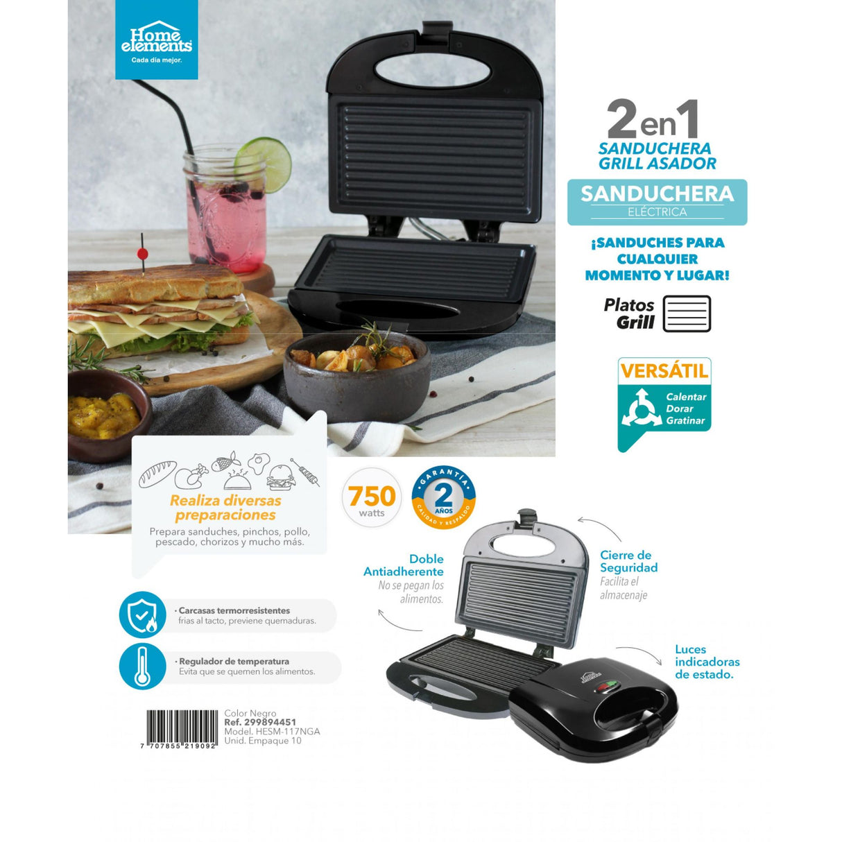 Sanduchera Negro 21.5x9cm de Dos Puestos Tipo Panini