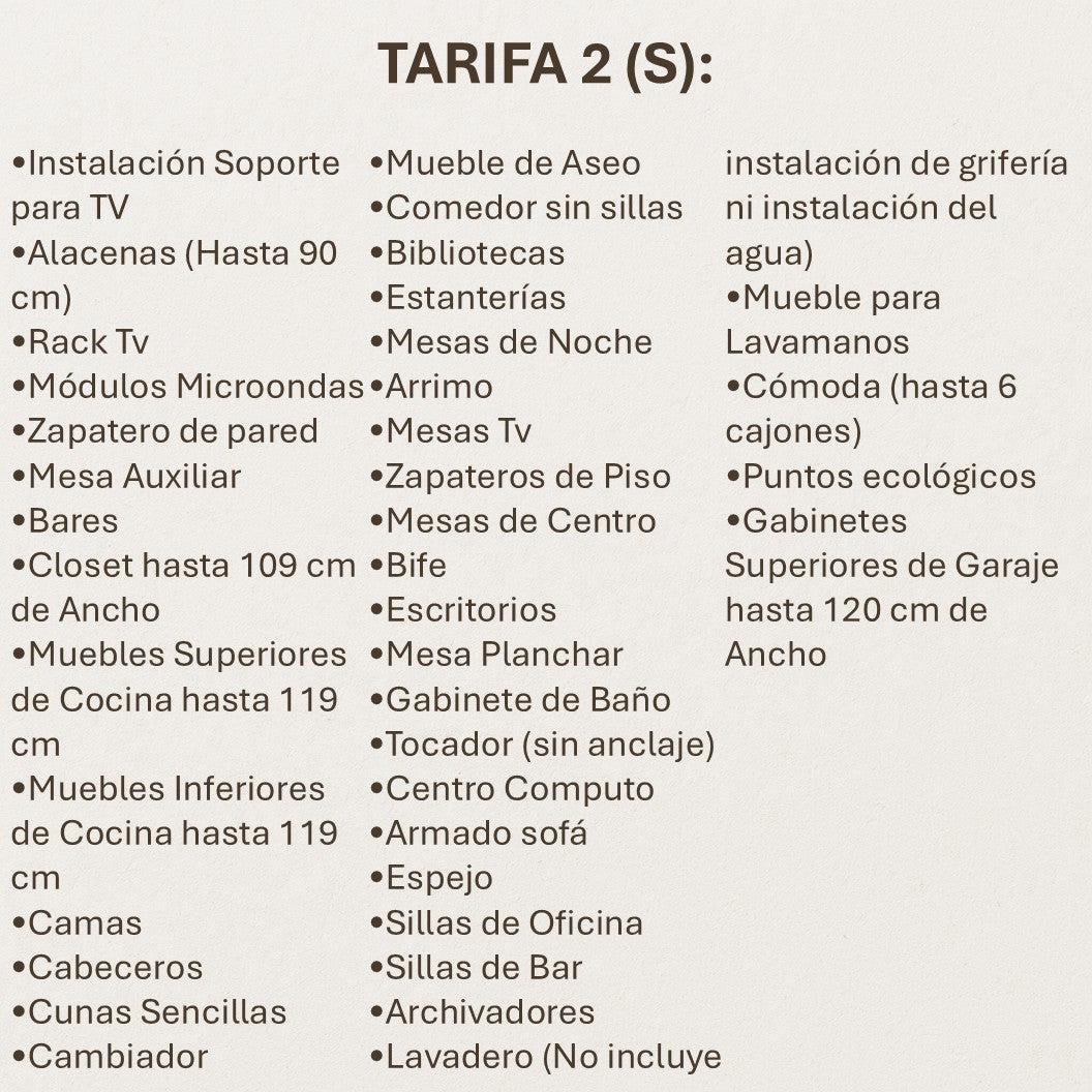 Debes seleccionar la tarifa correspondiente al mueble adquirido. Si eliges una tarifa incorrecta, te contactaremos para hacer la recotización.