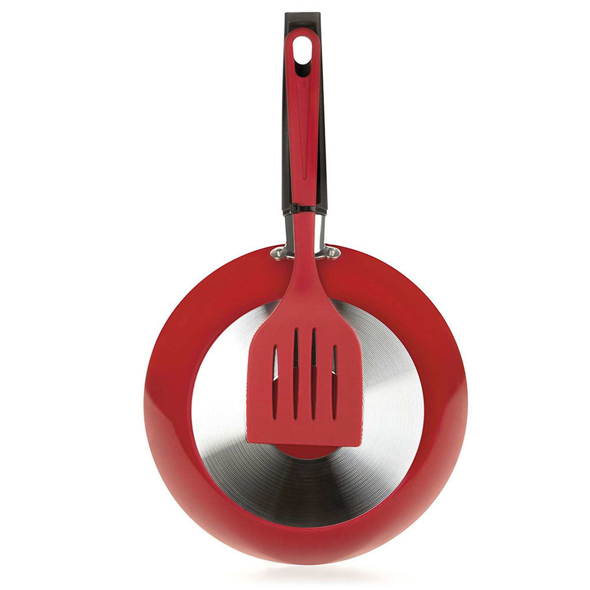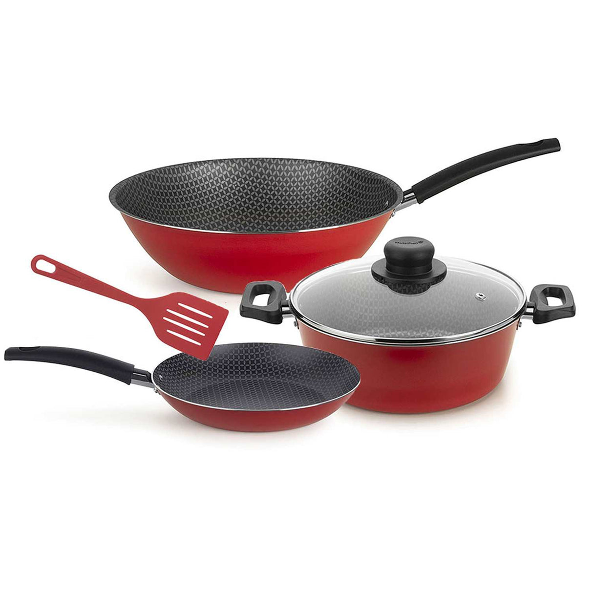 Set de Sarténes Aluminio Aspiración 36 cm wok Basic 45 cm y Olla con tapa Basic 35 cm con Espátula Rojo