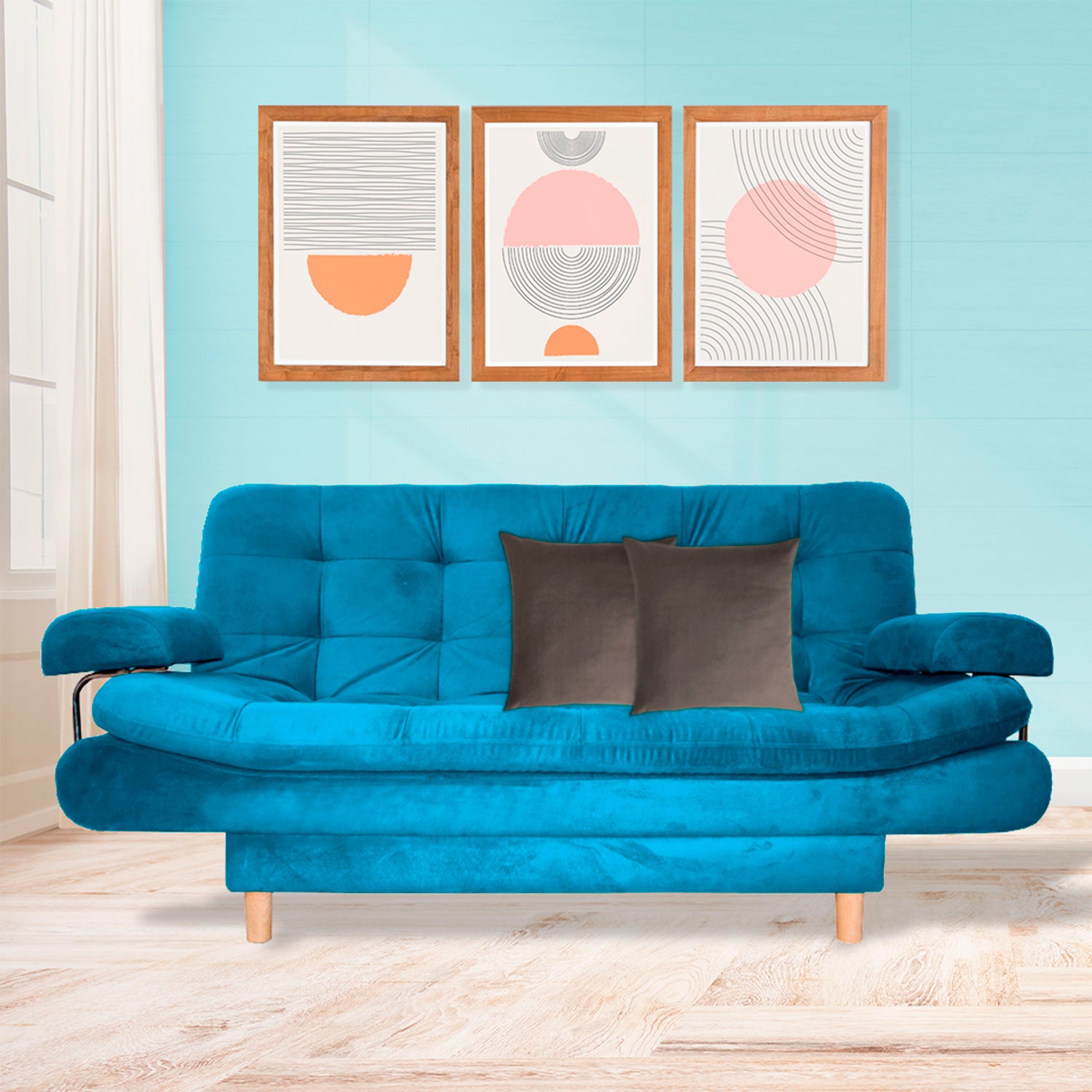 Sofá Cama Keller Turquesa 175x90cm con Dos Cojines