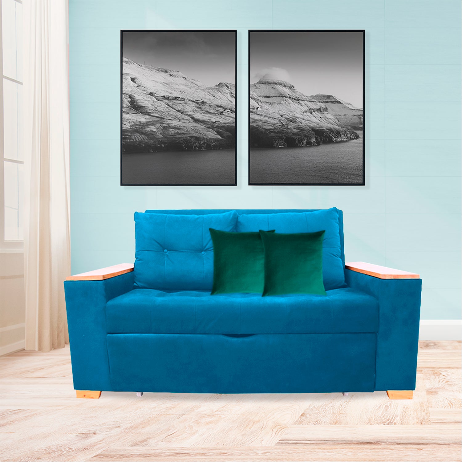 Sofá Cama Weber Turquesa 180x90cm con Cuatro Cojines