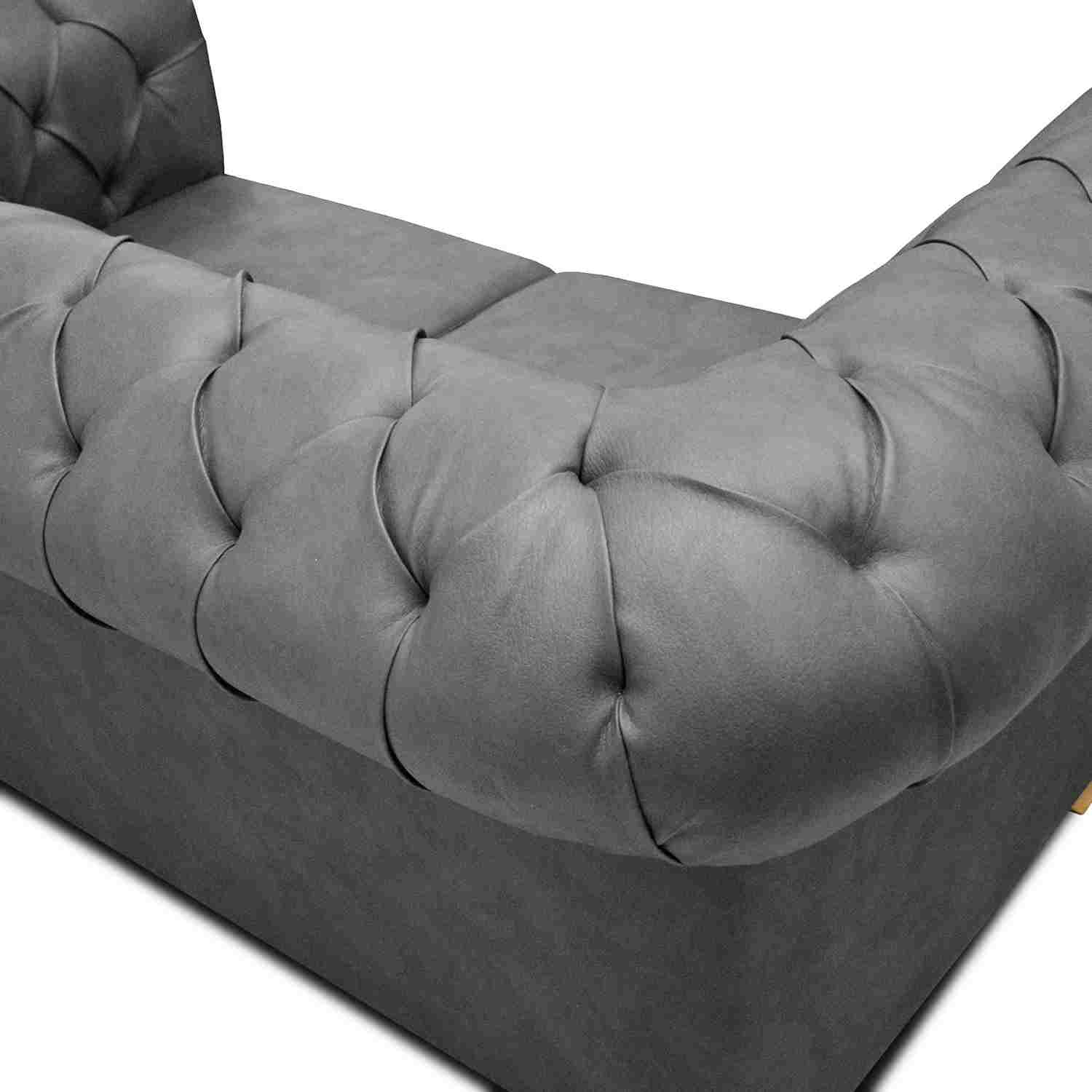 Sofá Chesterfield Cuero Gris 170x78cm De 2 Puestos con Apoya Brazos