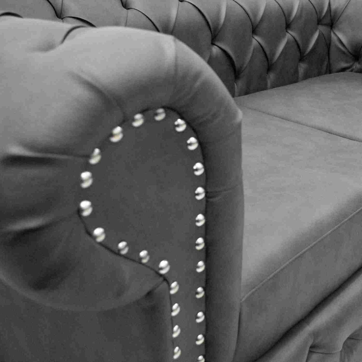 Sofá Chesterfield Cuero Gris 210x78cm De 3 Puestos con Apoya Brazos