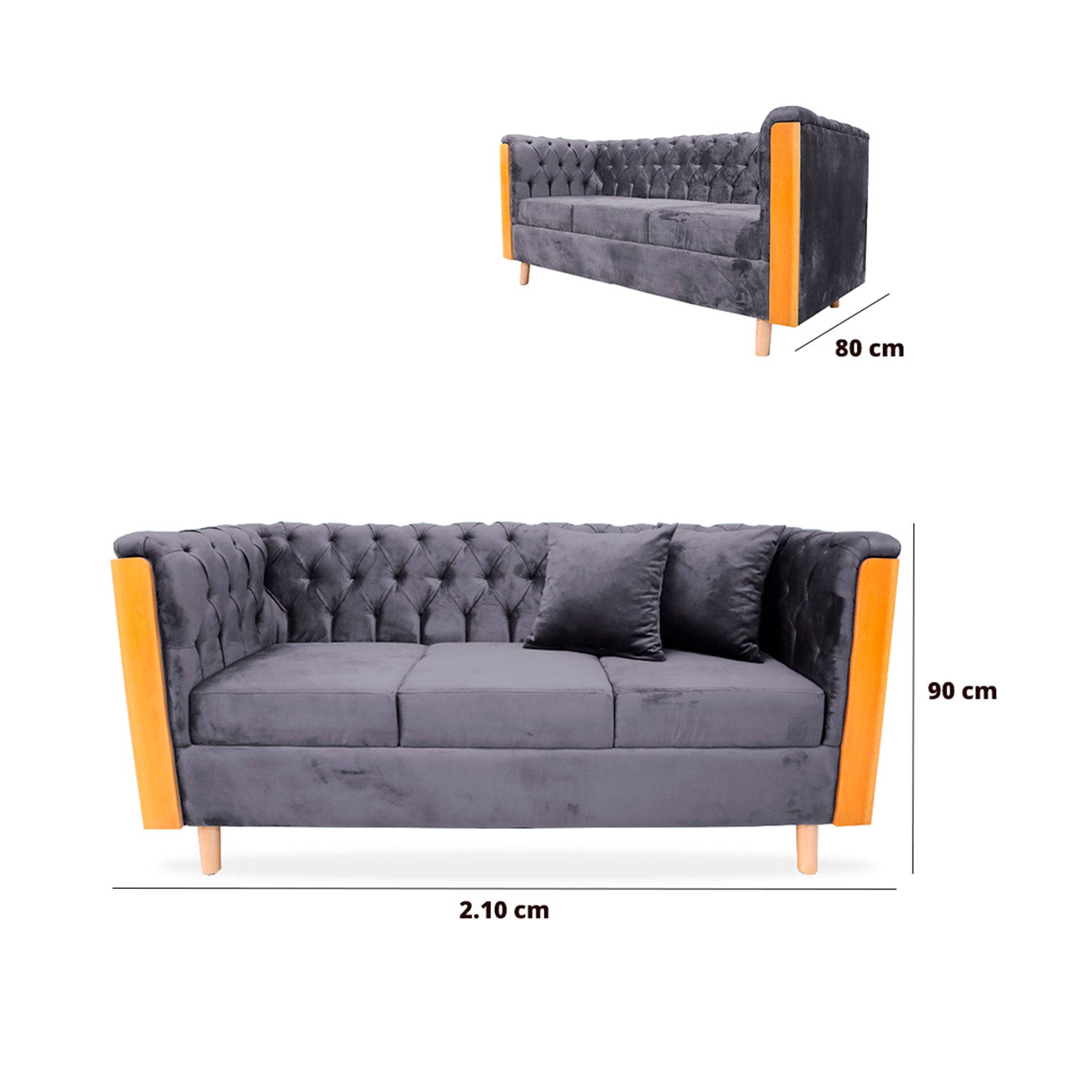 Sofá Steiner Gris 210x80cm Con Dos Cojines