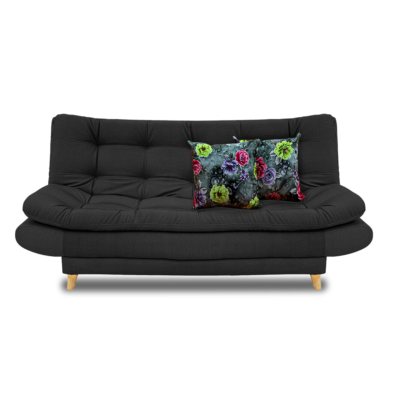 Sofacama Damasco Negro 185x40cm De Cuatro Puestos Reclinable Con 2 Cojines Decorativos