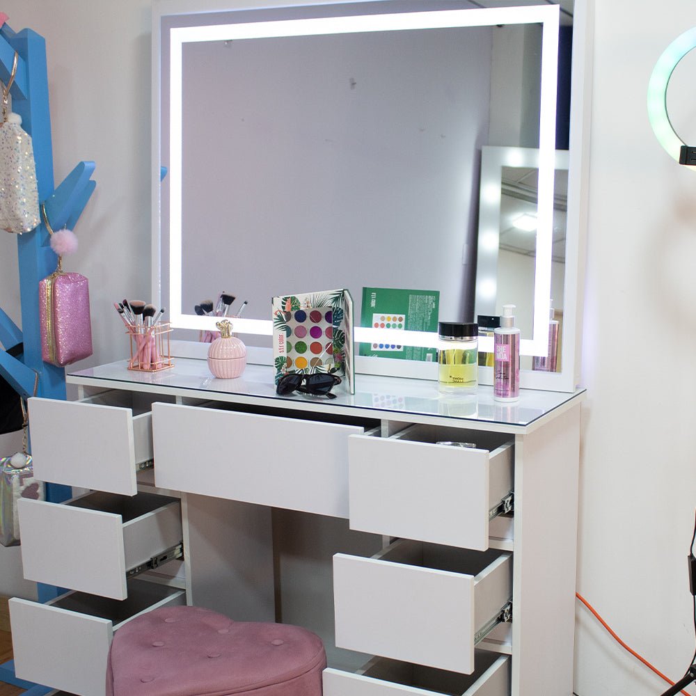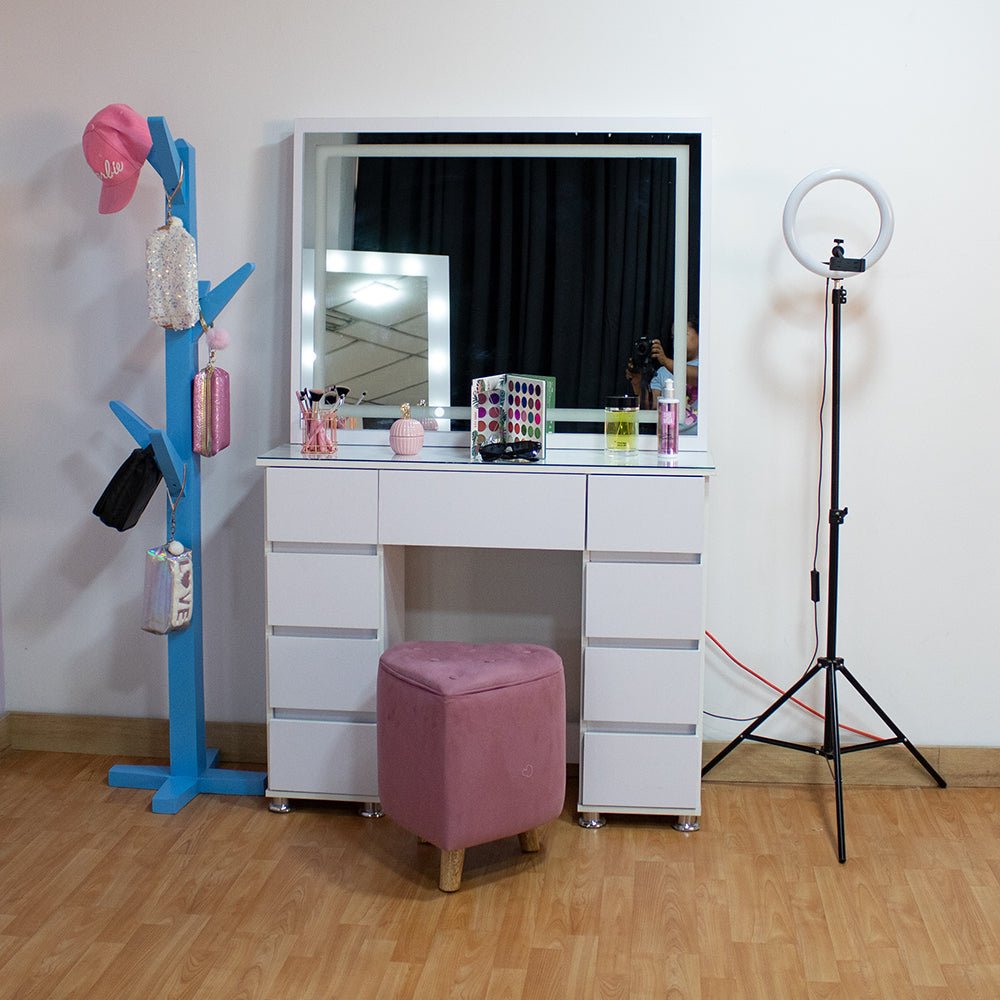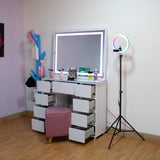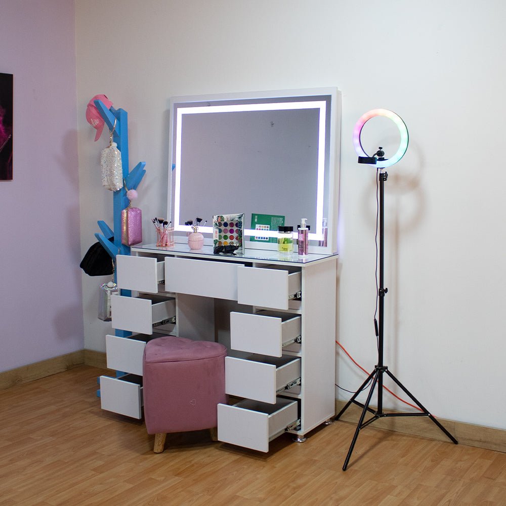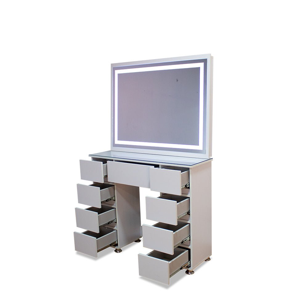 Tocador con Espejo Jazmin Blanco 105x165cm con Nueve Cajones