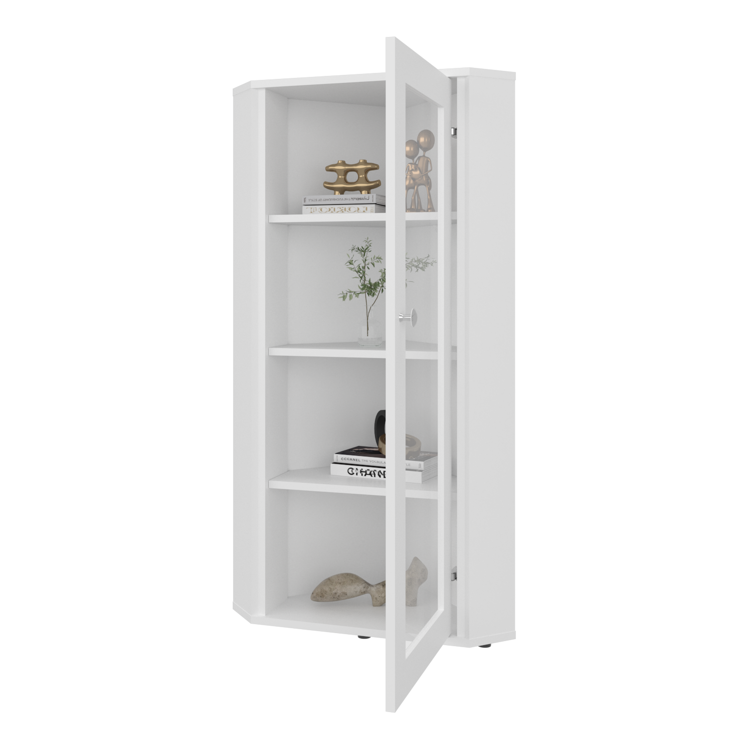 Vitrina Esquinera Genova Blanco 59.4x110.6cm Rectangular con Cuatro Compartimientos y con Tres Entrepaños