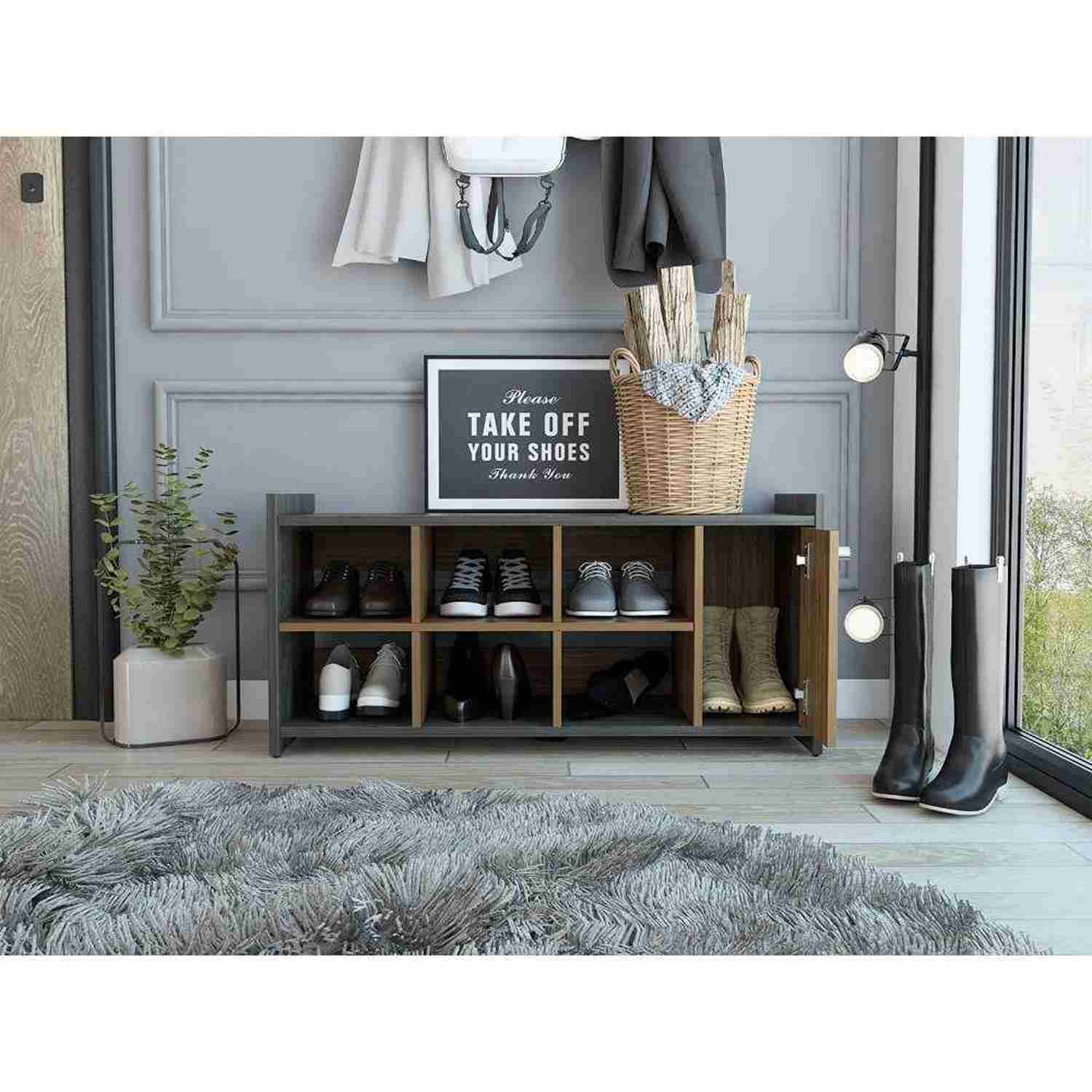 Organiza tus zapatos de forma elegante y práctica con nuestro zapatero en color carbón y gales. Con amplio espacio de almacenamiento para hasta doce pares, este zapatero también cuenta con un compartimento con puerta para guardar líquidos desinfectantes. Fabricado en resistente madera aglomerada MDP, su diseño moderno y fácil armado lo convierten en una excelente opción para tu recibidor. No incluye accesorios ni adornos, pero sí herrajes y manual de armado. ¡Mantén tus zapatos siempre ordenados con estilo y comodidad!